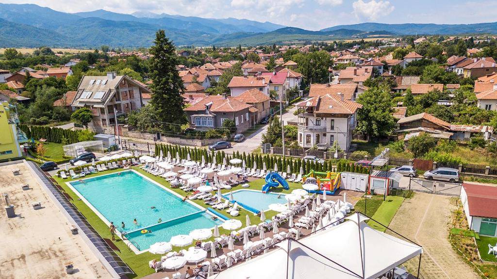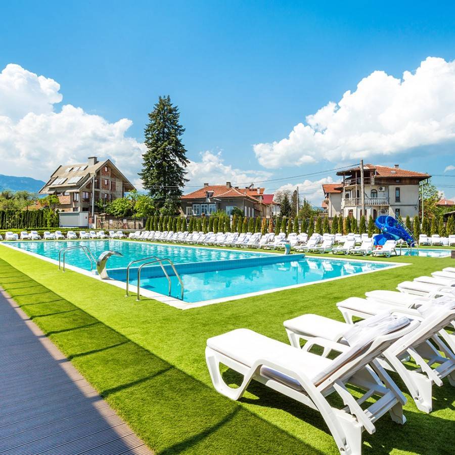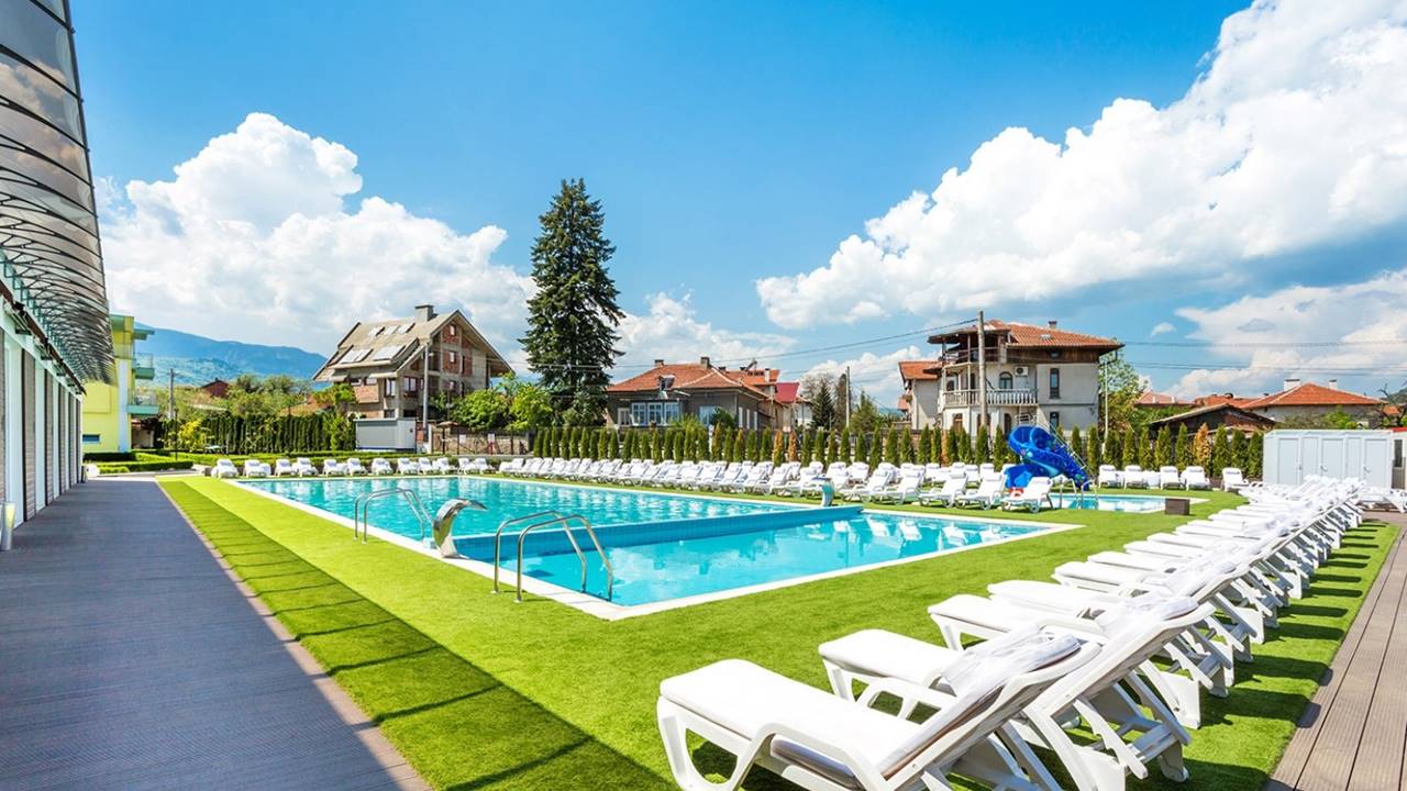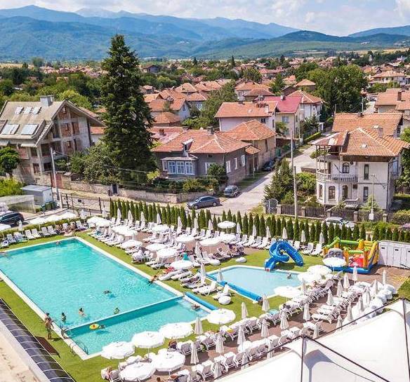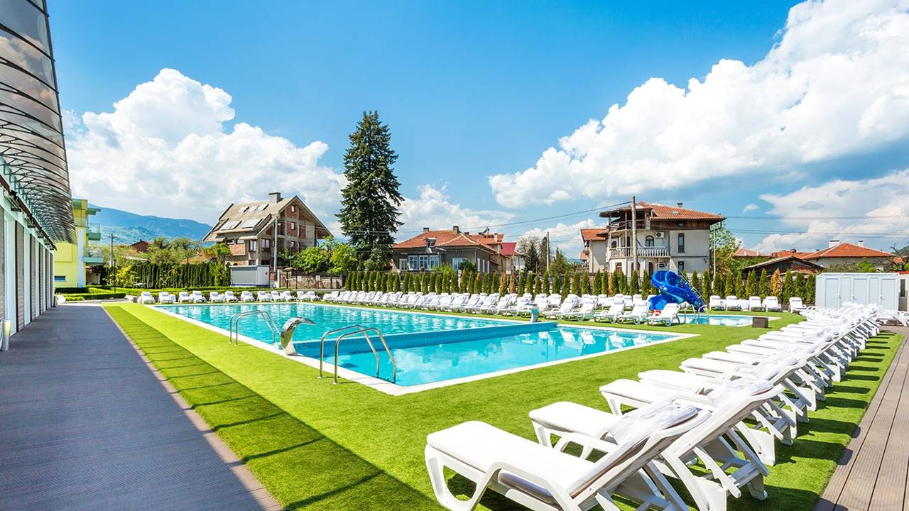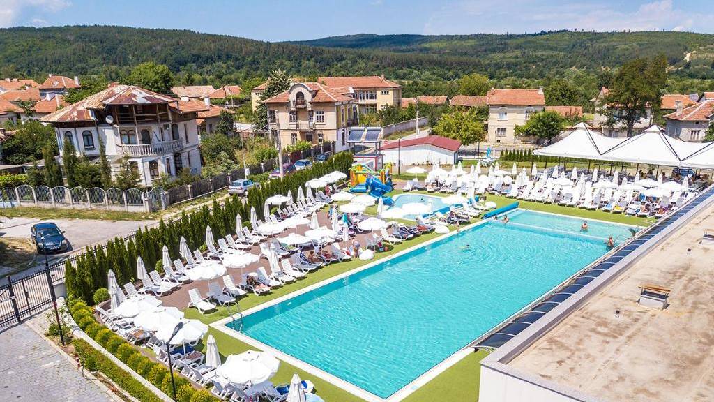 Басейни: целогодишно функционират 3 открити минерални басейна - голям басейн 26-28 градуса, акватоничен басейн 36-38 градуса, детски басейн 33 градуса