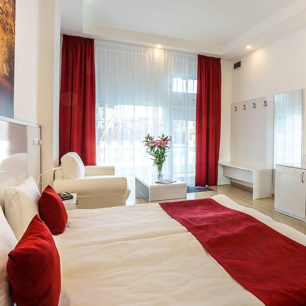 - двойна стая - 2 възрастни и 1 дете до 3.99 год. (без ползване на легло). 13 стаи с излаз към басейна или вътрешния двор