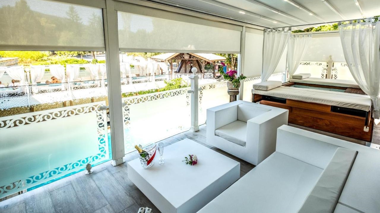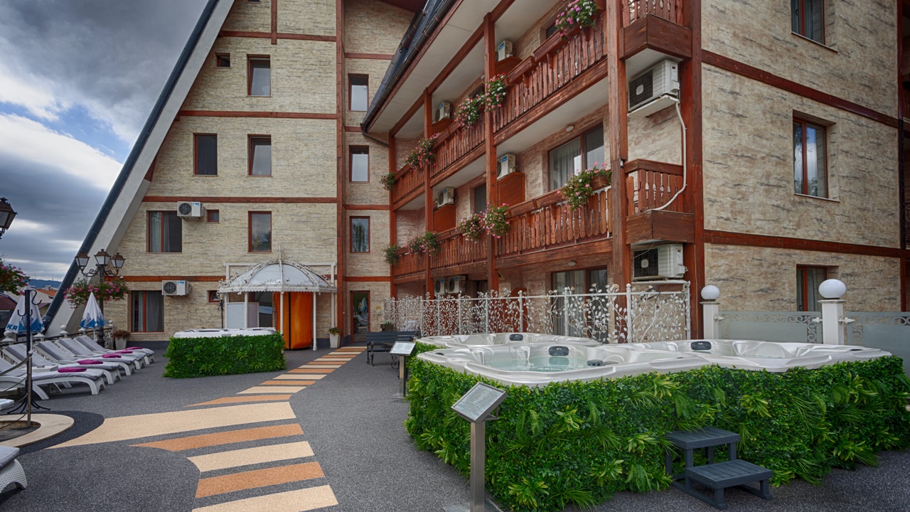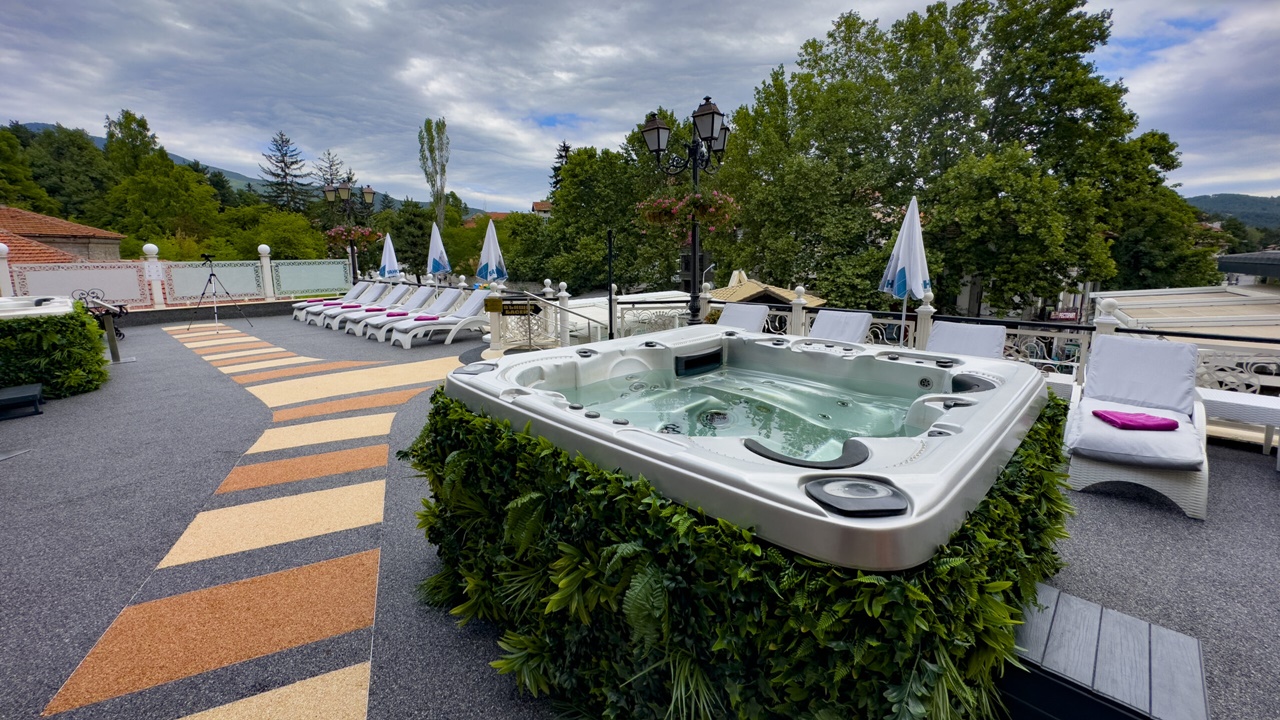 - VIP тераса с джакузи с минерална вода и лековити топила: