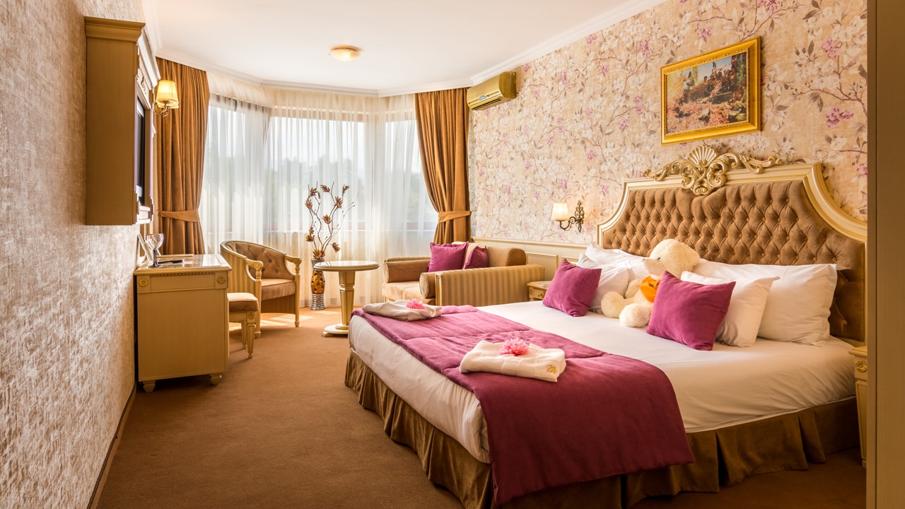 - двойна стая Делукс (6 бр. в хотела) - Едно помещение с голяма спалня 2х2м и двоен разтегателен диван вана в банята