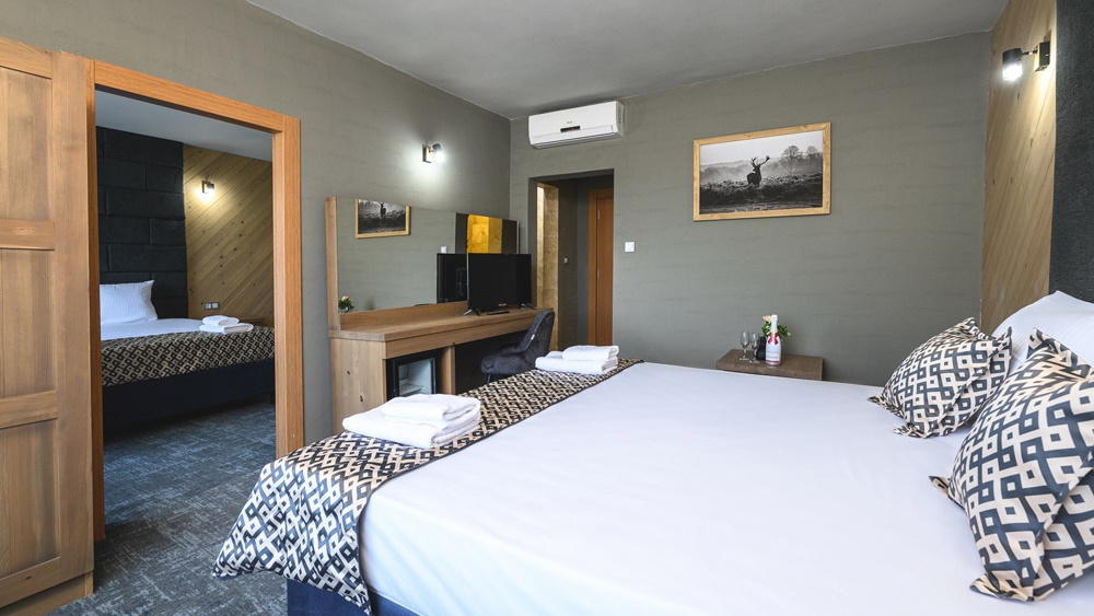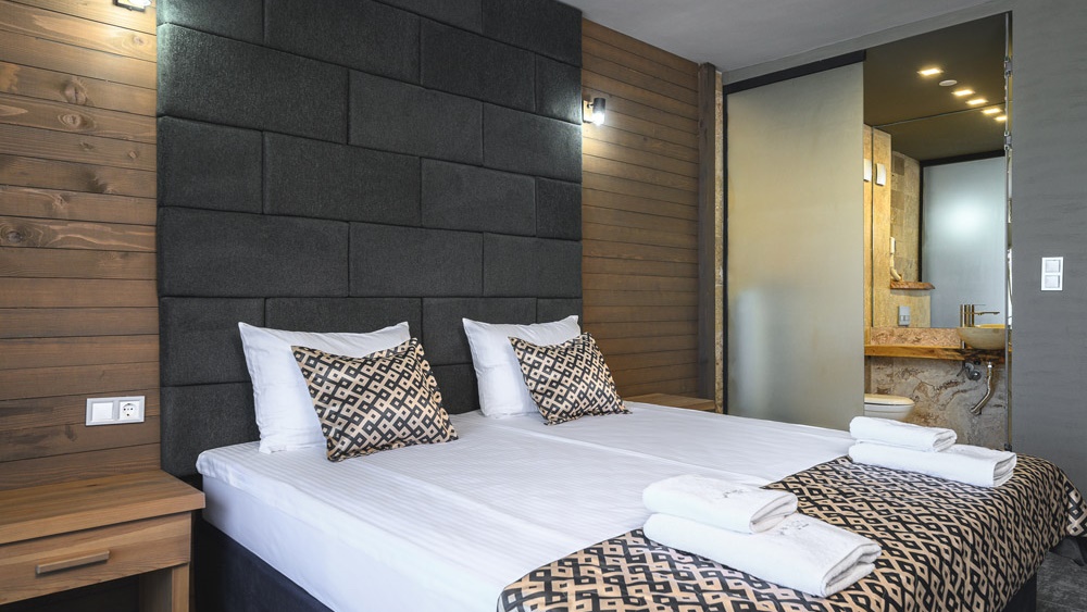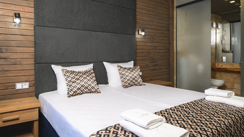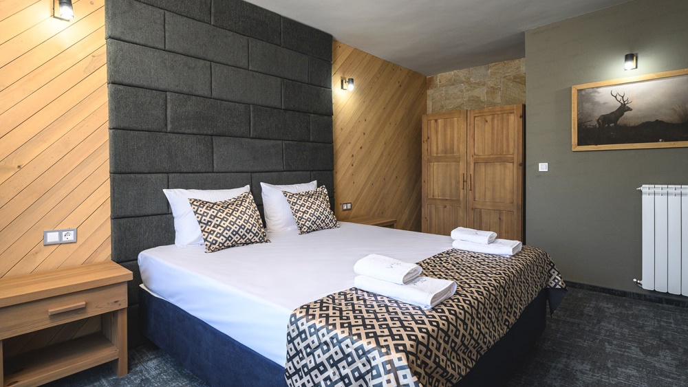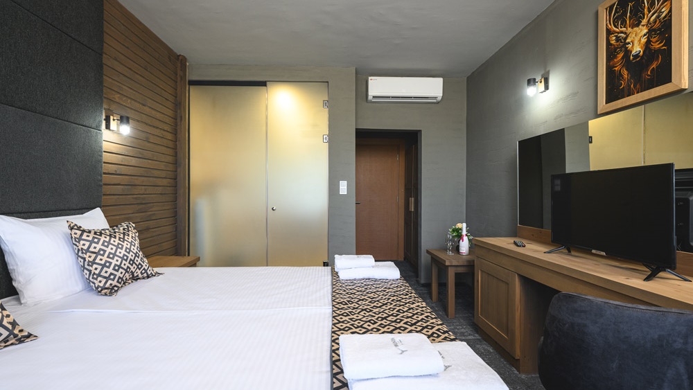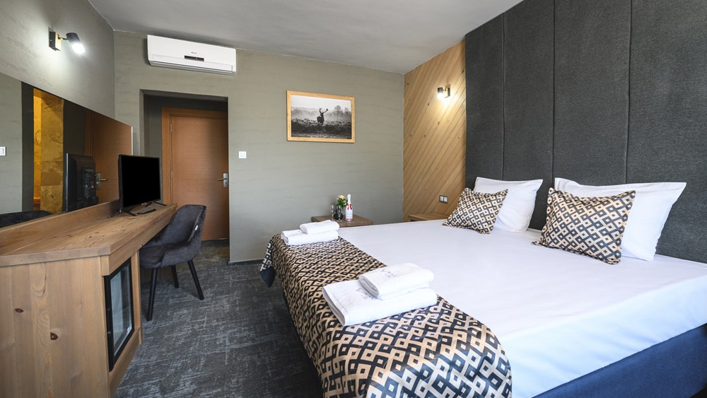 - двойна стая делукс (2 бр. в хотела) - Стаята разполага със спалня, баня с душ. Просторна и изискана стая, която предлага всички удобства и свобода. Тук ще намерите съвременен дизайн, уютна зона за релакс и внимателно подбрани детайли, които правят престоя Ви наистина специален.