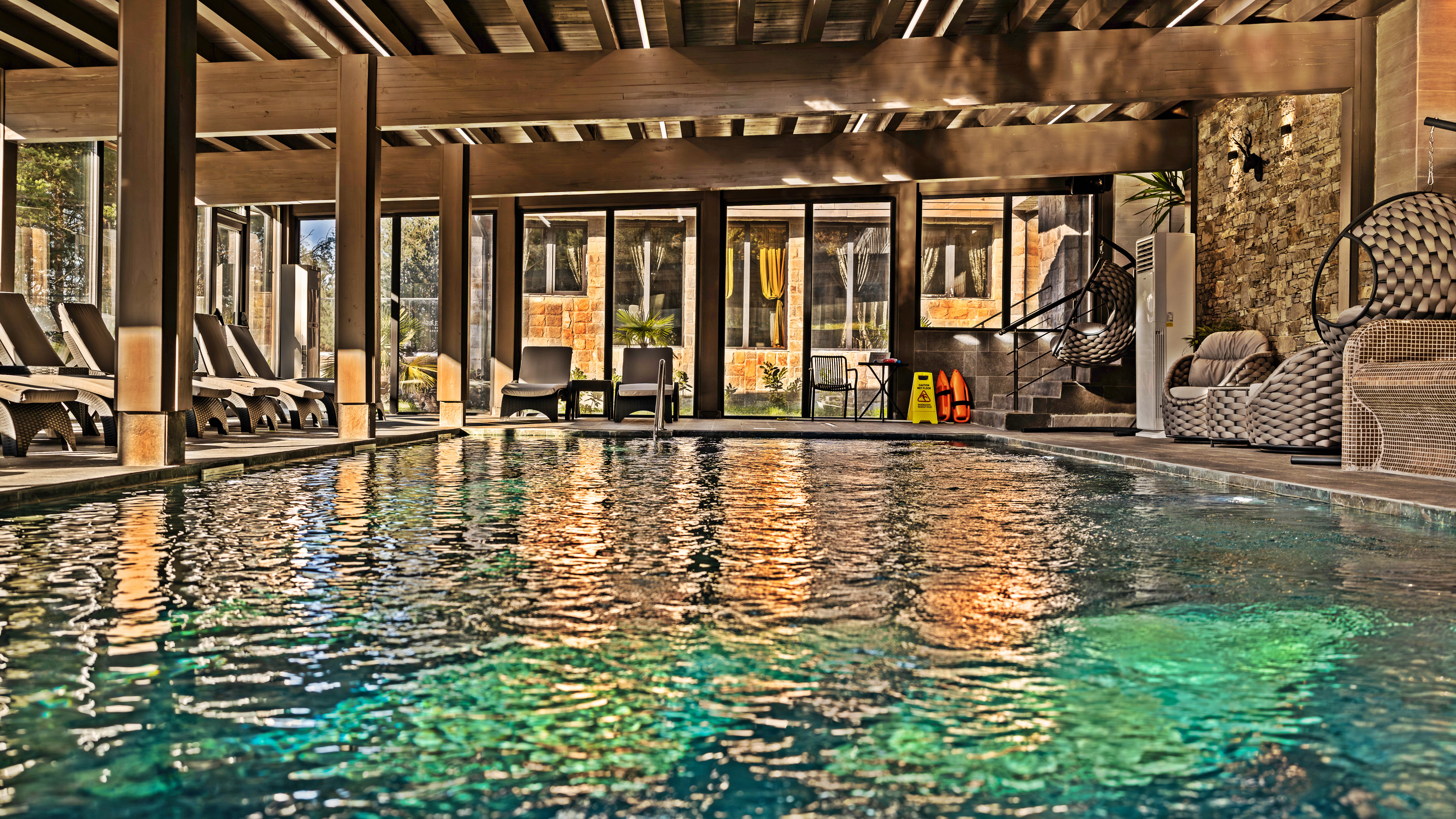 Насладете се на безкрайния релакс във външните и вътрешни басейни или се потопете в нашия просторен СПА център, предлагащ разнообразие от терапии и процедури. Външната градина и терасите предлагат панорамни гледки към Родопите, където времето сякаш спира.