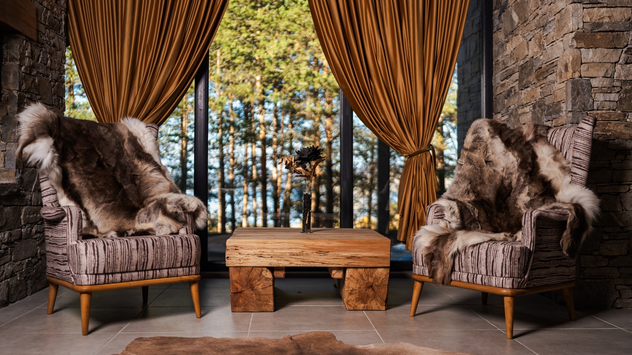 Използваните естествени материали - дърво, камък и кожа-създават уютна и вдъхновена от гората атмосфера. Просторните зали и уникалният дизайн ще ви потопят в истинския дух на природата, без да правите компромис с комфорта. В близост е и язовир Батак– перфектната дестинация за разходки, риболов и водни спортове.