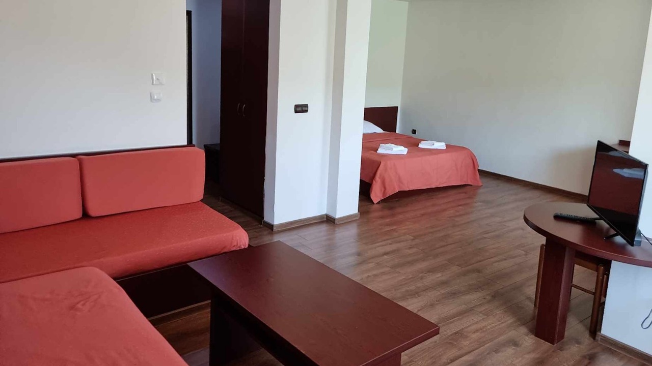 - двойна стая - 2 възрастни + 1 дете или 3 възрастни. Спалня + редовно легло (общо 12 бр. в хотела)