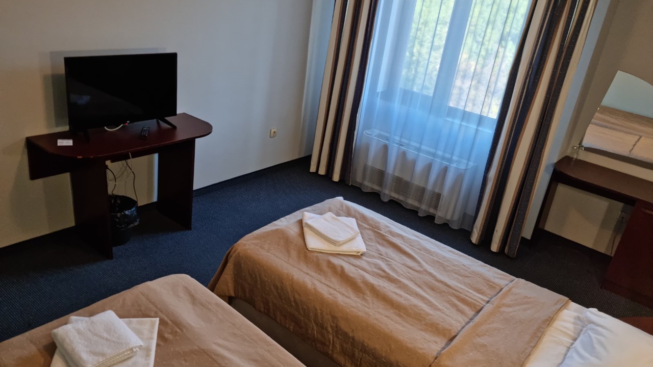 - тройна стая - 3 възрастни. Три редовни отделни легла или спалня + редовно легло (общо 20 бр. в хотела)