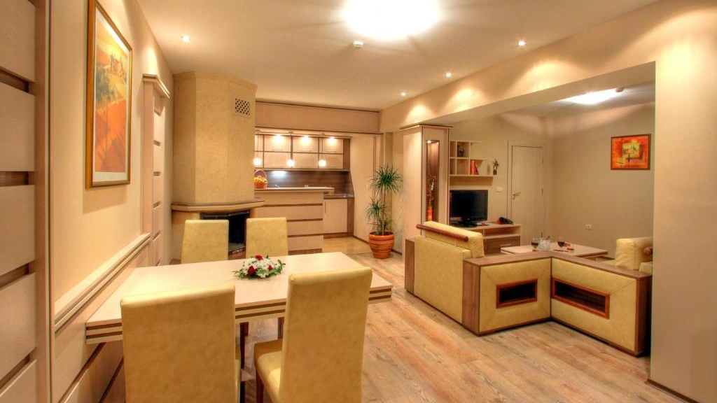 - апартамент с 1 спалня - 2 възрастни + 2 деца или 3 възрастни. Спалня и хол с разтегателен диван