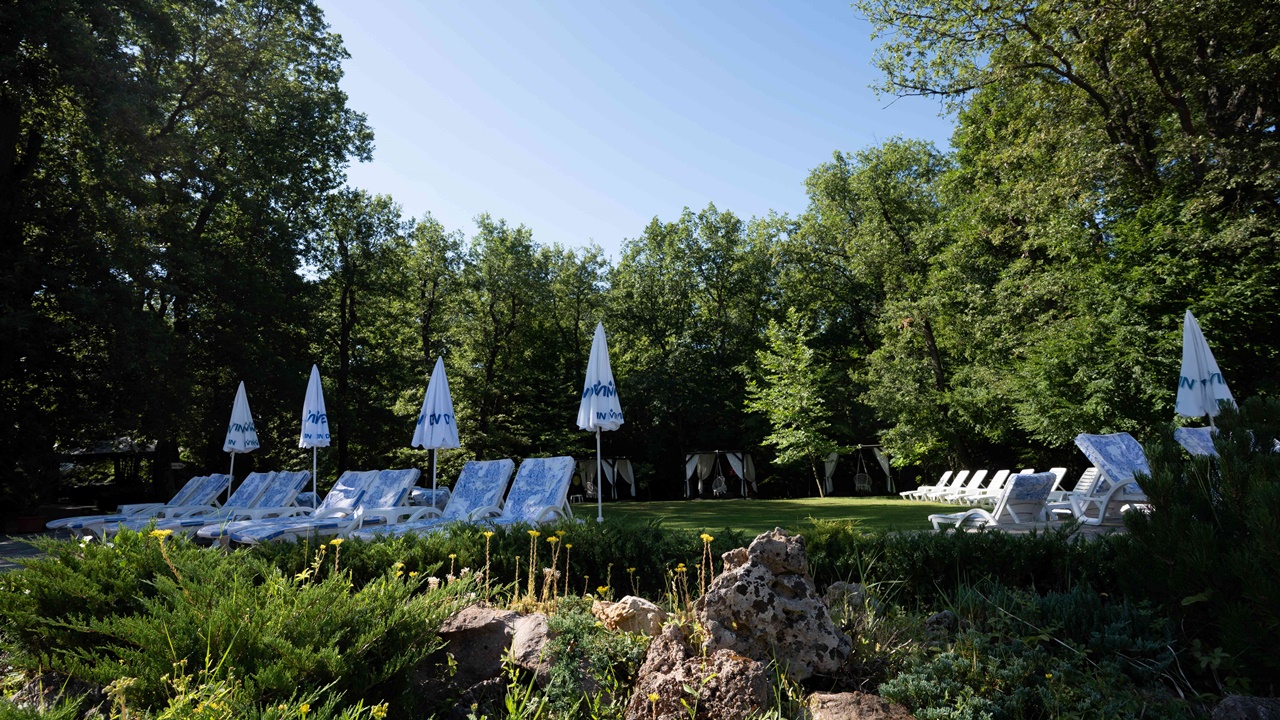 - Шезлонги край басейна и на тревните площи (при наличие на свободни)