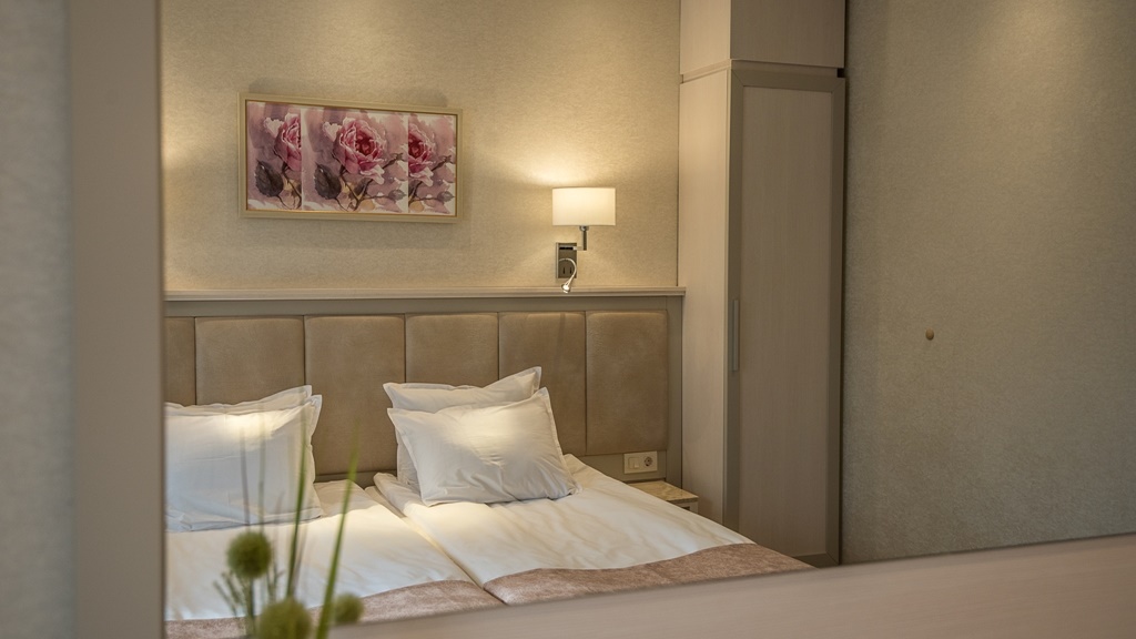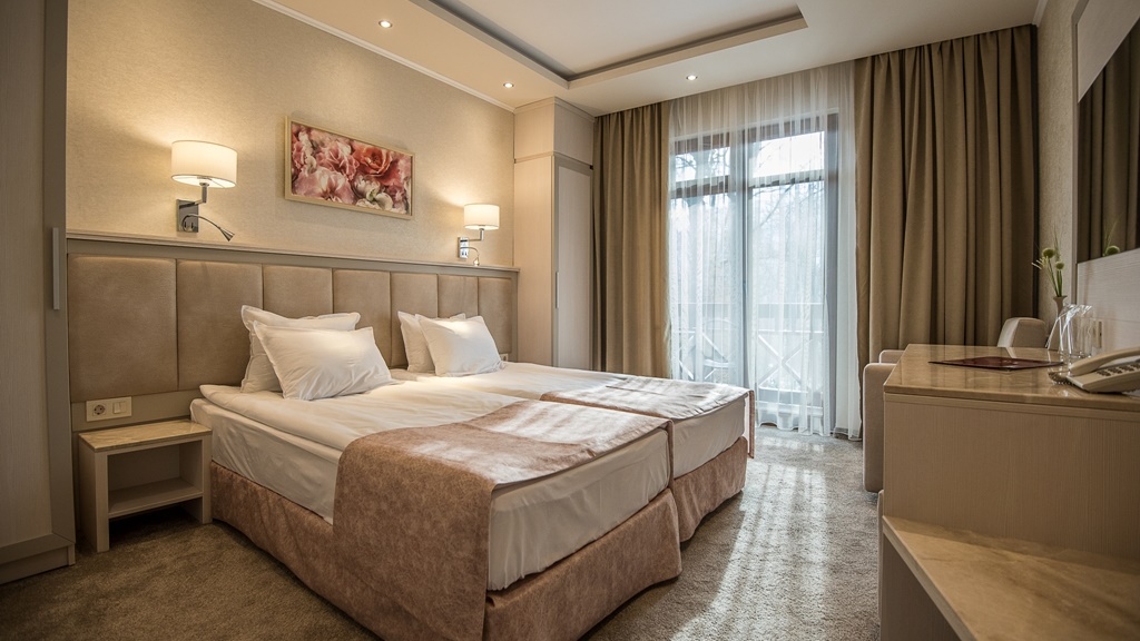 - двойна стая с/без балкон - 2 възрастни + 1 дете. Спалня или две единични легла + разтегателен фотьойл