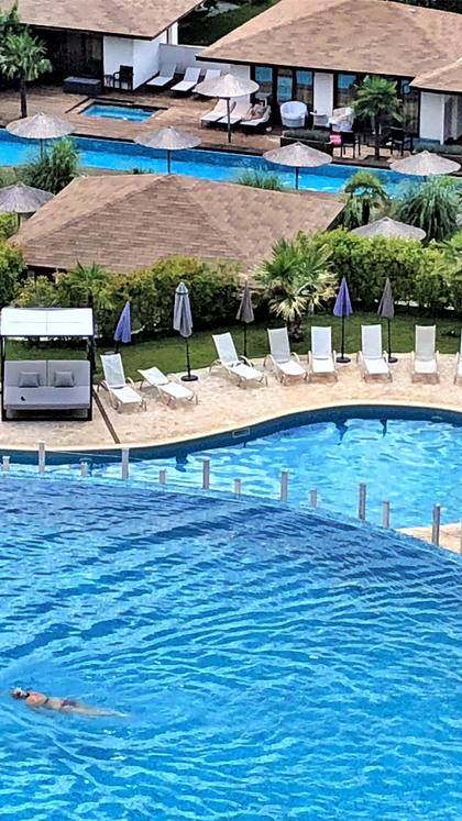 - Вилите с 3 спални са с площ 70 кв. м. и са едноетажна, като разполагат с три спални, една баня, всекидневна с кухня и комфортна и луксозна мека мебел. Всяка вила разполага със самостоятелно външно джакузи с минерална топла вода целогодишно. Вилната зона разполага с многобройни кътове за сядане на открито, самостоятелен басейн с минерална вода на открито само за вилната зона, шезлонги, бар-басейн.