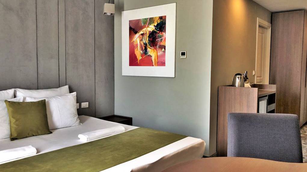 - Делукс стаята е площ 30 кв. м. и разполага с двойно легло, климатик, отварящи се прозорци, кът за отдих, LED телевизор, мини бар, термокана, кафе и чай комплимент, сейф, телефон, безжичен интернет, сешоар, баня с душ и/или вана, халати, хотелска козметика. Част от стаите имат и тераси.