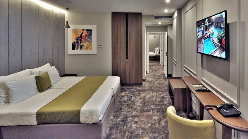 - Всеки апартамент е с площ 95 кв. м. и разполага с 2 двойни легла, разтегателен двоен диван, климатик, отварящи се прозорци, кът за отдих, LED телевизор, мини бар, термокана, кафе и чай комплимент, сейф, телефон, безжичен интернет, сешоар, баня с душ и/или вана, халати, хотелска козметика. Някои апартаменти имат и тераси.