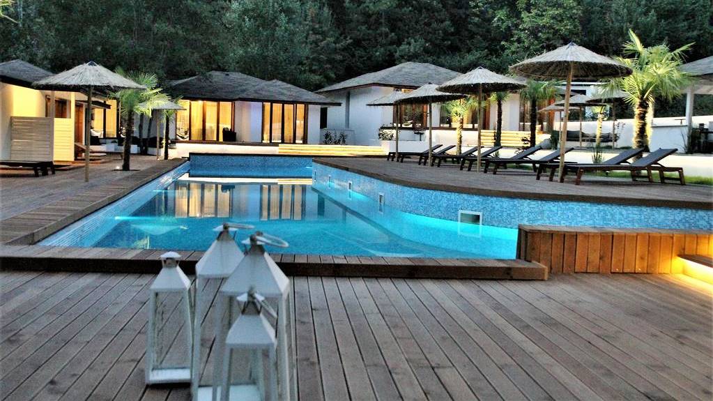 - Вилите са ситуирани около общ минерален басейн и разполагат с индивидуално външно джакузи с минерална вода, което е на разположение единствено за гостите на съответната Вила