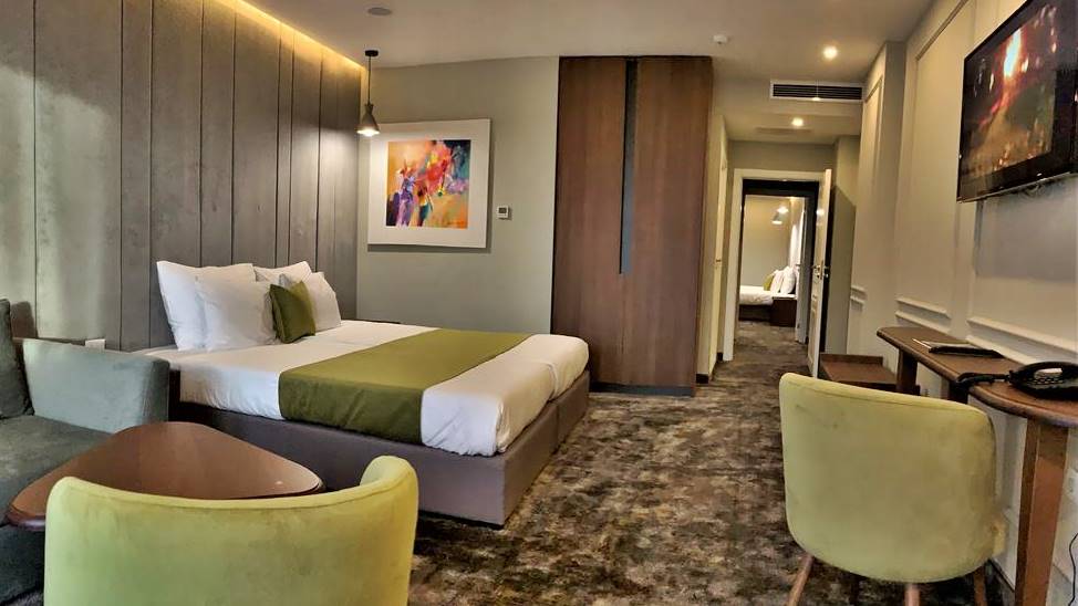 - Джуниър суит е със спецификациите на студио, 40 кв. м. площ и разполага с двойно легло, разтегателен двоен диван, климатик, отварящи се прозорци, кът за отдих, LED телевизор, мини бар, термокана, кафе и чай комплимент, сейф, телефон, безжичен интернет, сешоар, баня с душ и/или вана, халати, хотелска козметика. Помещенията нямат тераси.