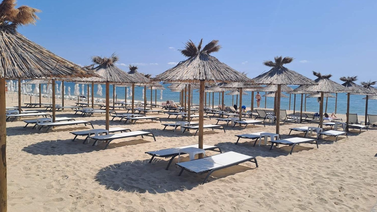 Собствена плажна зона с Чадъри и шезлонги на Плажа