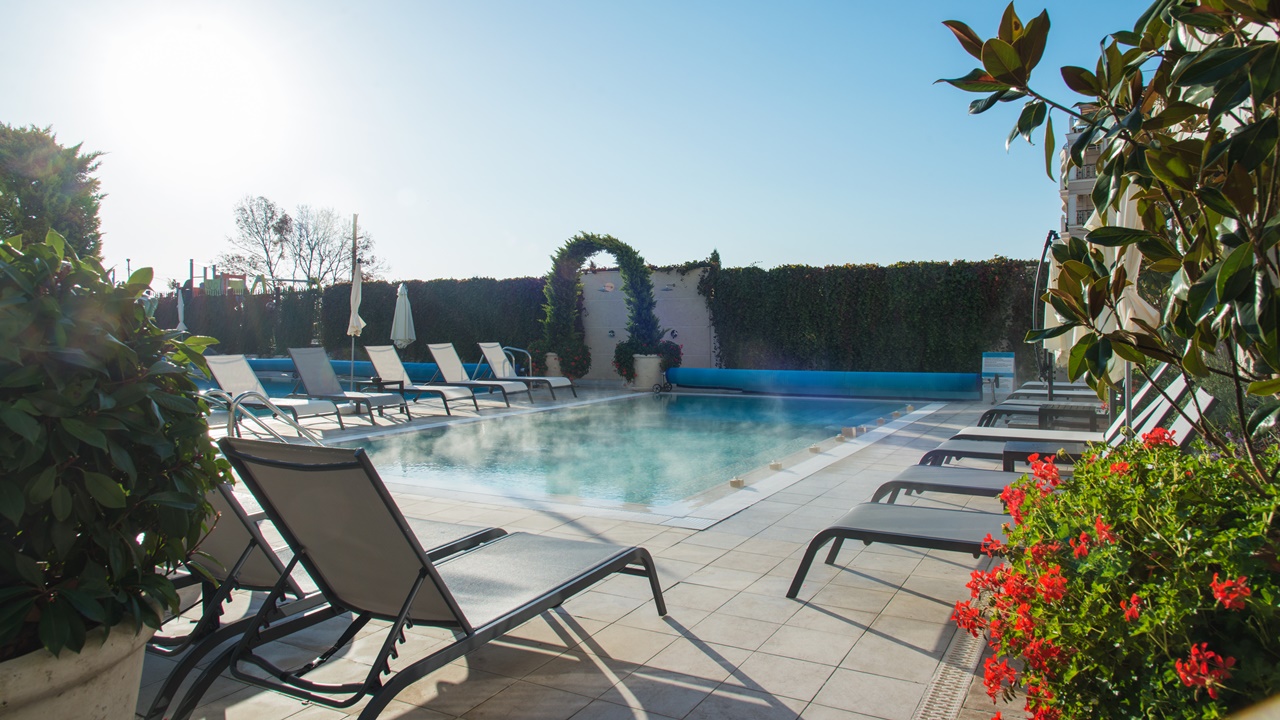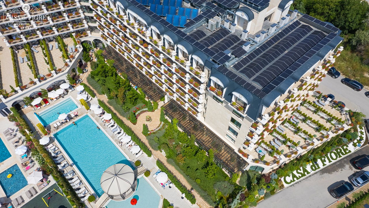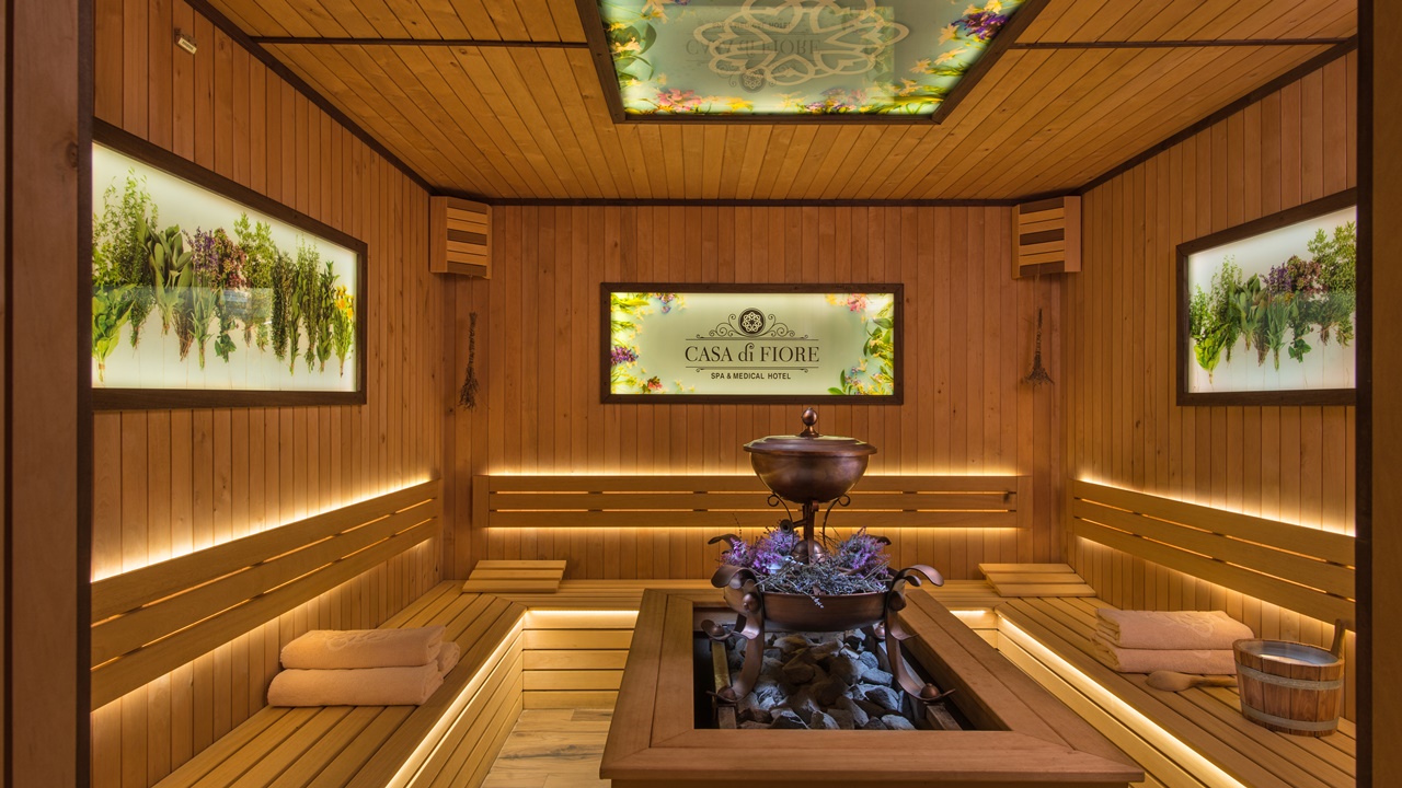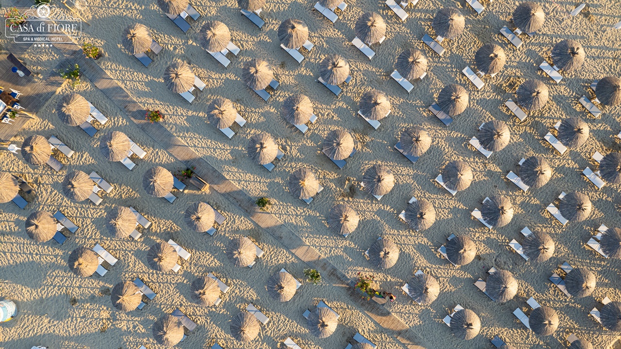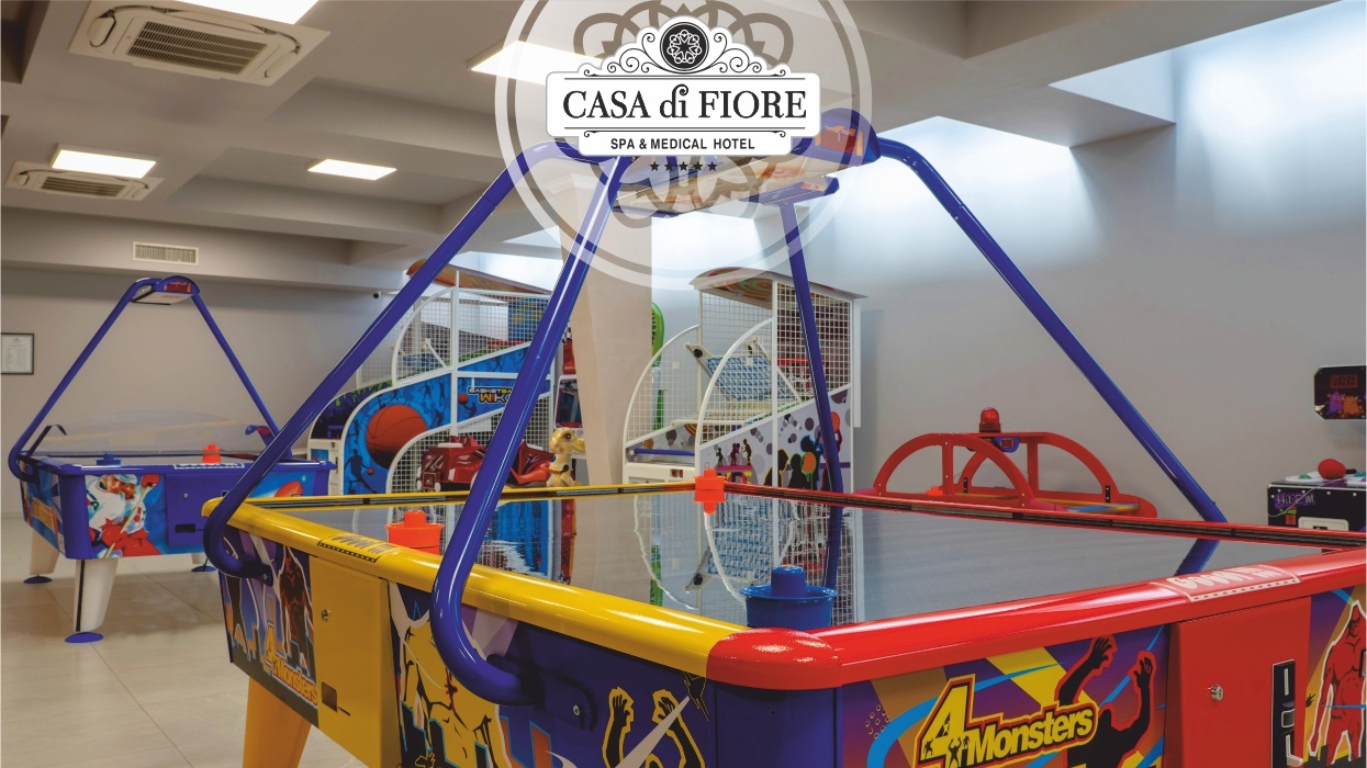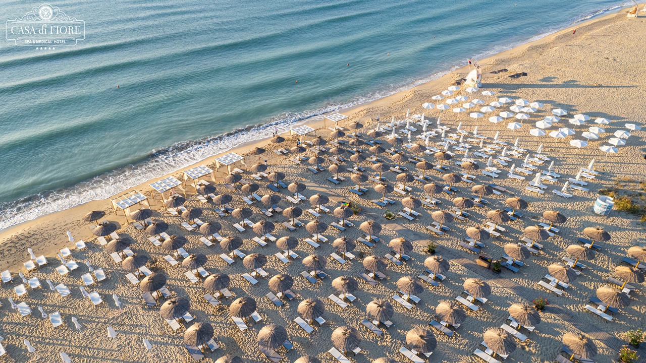 Басейни, СПА и Плаж:Захранван изцяло с минерална вода, хотел Casa di Fiore предлага изключително богат избор от външни и вътрешни басейни, повечето от които са отворени целогодишно: солен басейн, акватоничен басейн, горещ басейн, контрастен басейн, открит плувен басейн и детски басейн. Гостите могат да се насладят на разнообразие от спа и медицински процедури, термална зона с финландска сауна, кедрова сауна, арома сауна, инфрачервена сауна, парна баня, солна стая, Кнайп пътека, стая за релакс, фитнес и витамин бар, докато децата се забавляват в детския клуб. Плажът се намира на метри разстояние, а през летния сезон на разположение са чадъри и шезлонги на плажа.