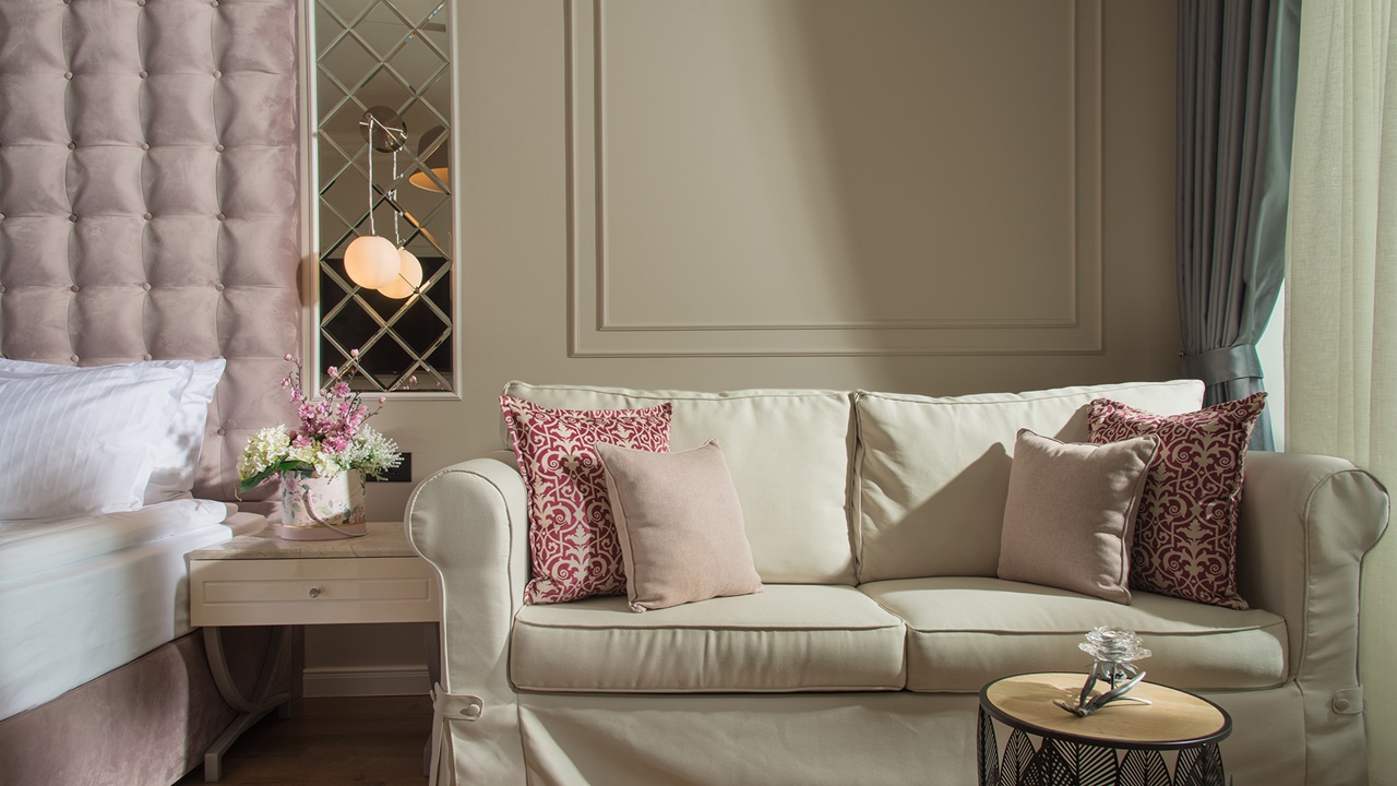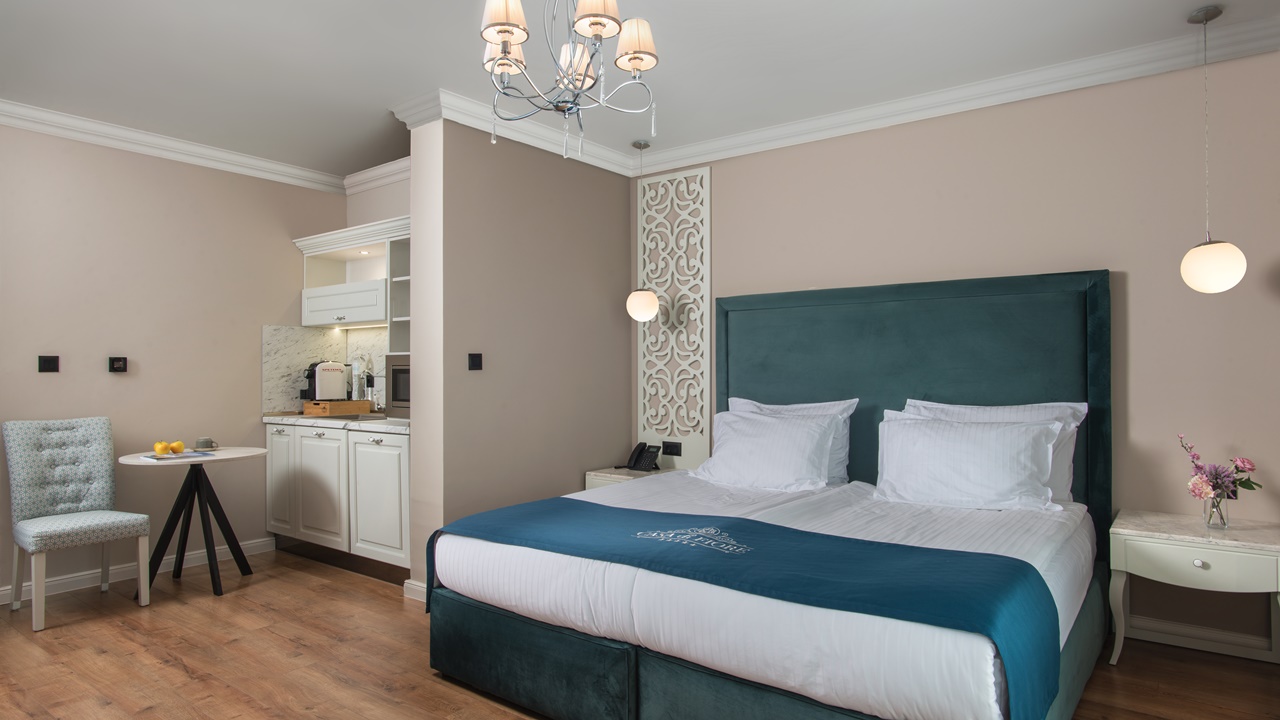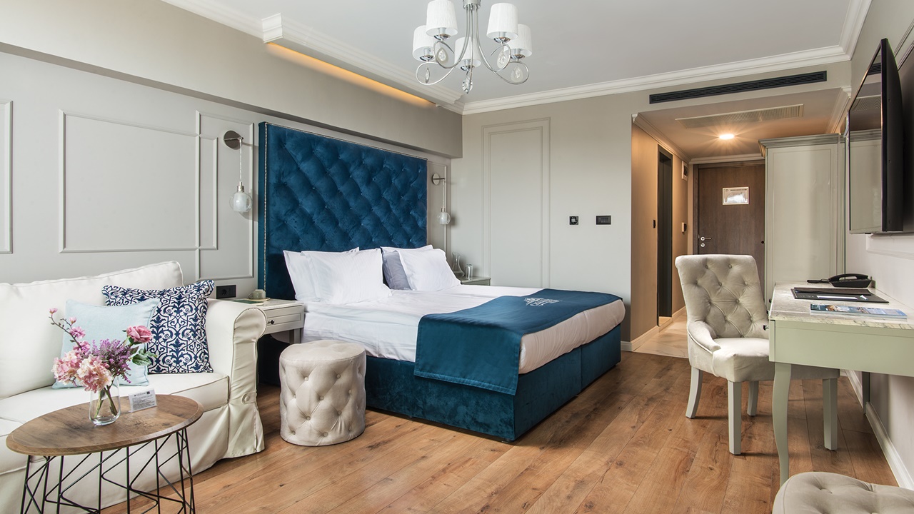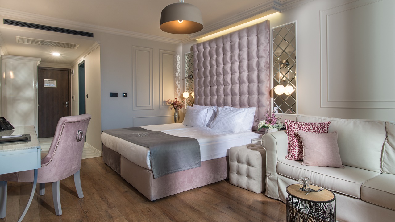- Двойна стая Делукс - 2 възрастни и 2 деца или 3 възрастни + дете. Двойните стаи Магнолия (решени в лилаво) и Лавандула (в синьо) предлагат гледка към морето или градината и балкон. Разполагат с комфортна спалня и разтегателен двоен диван