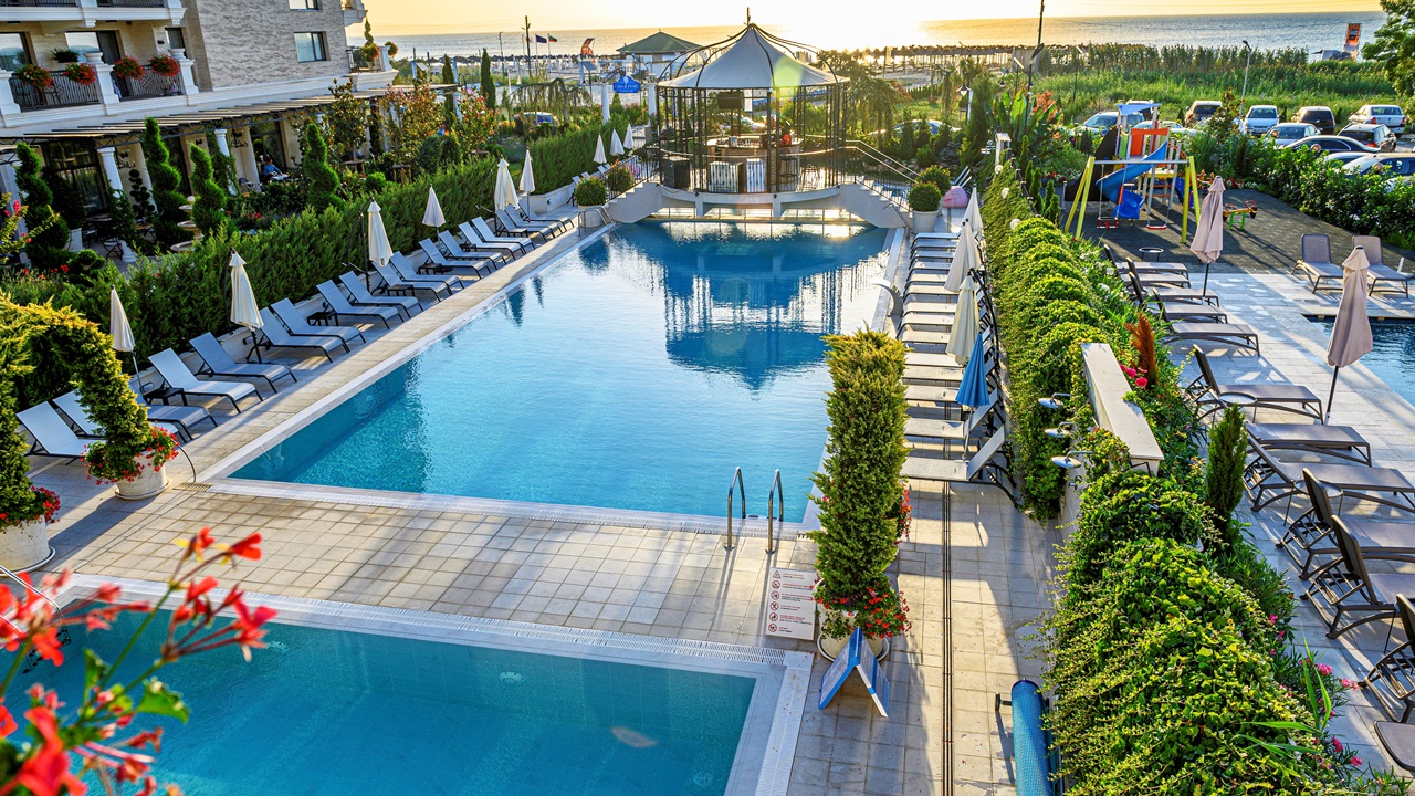 За децата: Детски кът - климатизирано, креативно обзаведено помещение, което ще осигури безопасен престой на вашите деца; Игрална зала с площ от 170 кв.м. – интерактивни игри, джаги, дартс, билярд, въздушен хокей, тенис на маса; Кино салон - прожекция на любими детски филми в конферентната зала; Детски басейни - закрит целогодишен басейн и открит сезонен; детско меню.