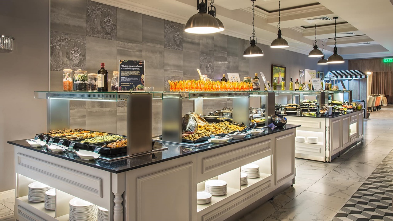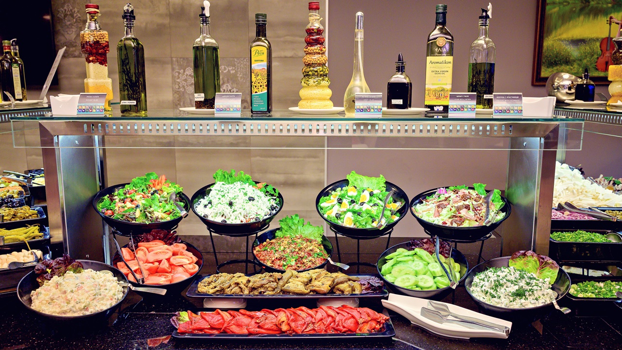 - Изхранването е на блок маса. При много ниска заетост е възможно изхранването да е на сет меню. Месото е от собствени ферми, а плодовете и зеленчуците са сезонни и подбрани от региона; домашни хлябове, приготвени на момента, месни и постни ястия, салати, десерти; шоу кукинг/ Включени напитки по време на закуска (кафе, чай, вода, здравословни сокове, фреш)