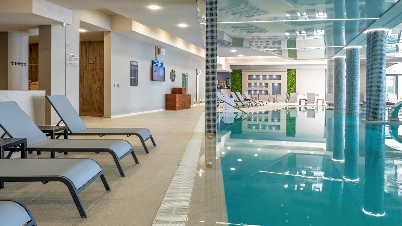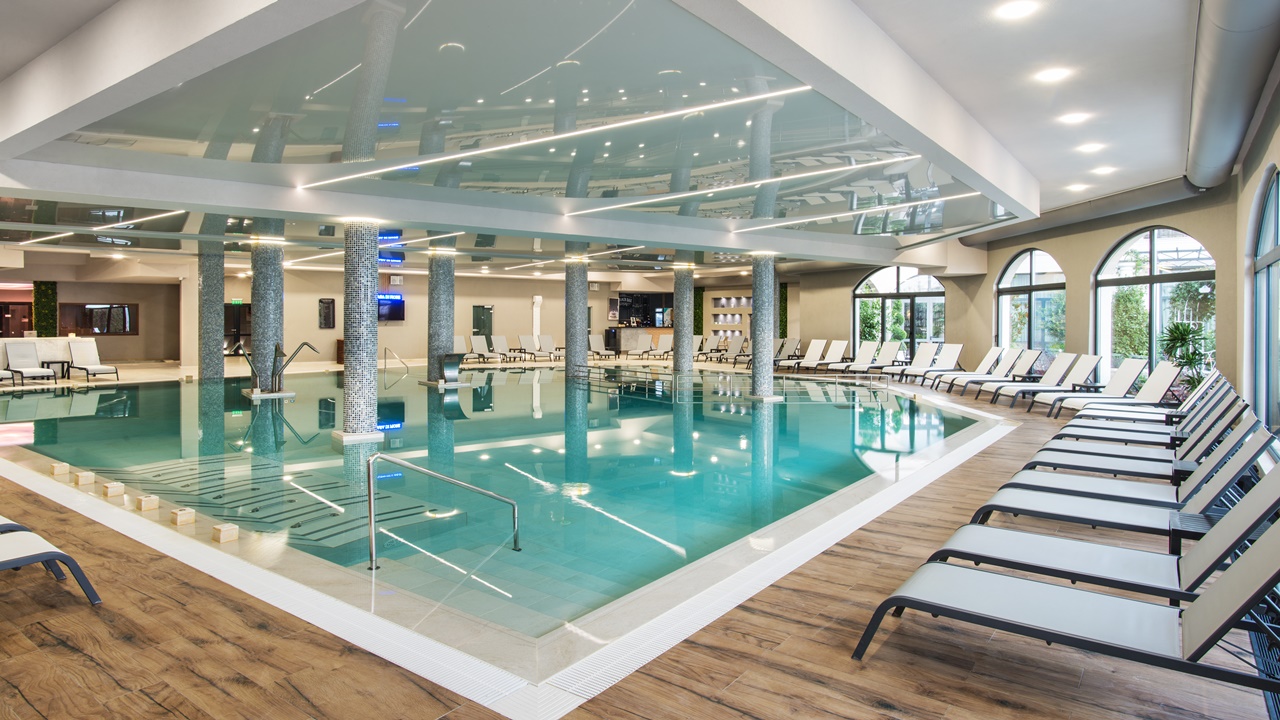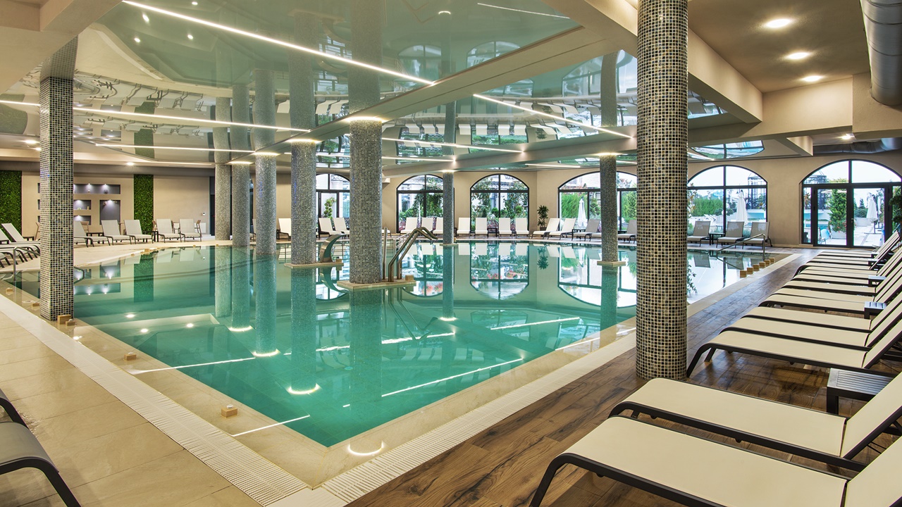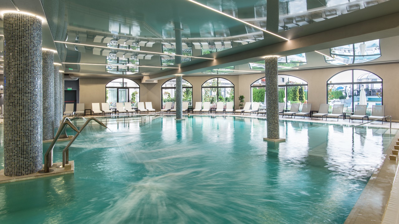 - Акватоничен с хидромасажни зони, водопади и водни ефекти, голяма детска секция