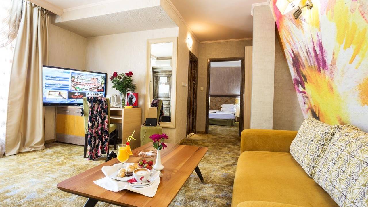 - Балнеокомплекс АкватониК 4* разполага с 96 помещения, от които: 66 двойни стаи, 22 двойни стаи плюс, 8 апартамента, от които: 6 двустайни, 1 двустаен делукс (110 кв.м., тераса) и 1 ВИП тристаен (90 кв.м., тераса). Помещенията са модерно обзаведени с TV, климатик, мини бар, интернет, телефони, SOS аларма, противопожарна система, контрол на достъпа, видеонаблюдение и фоново озвучение на коридори и общи части