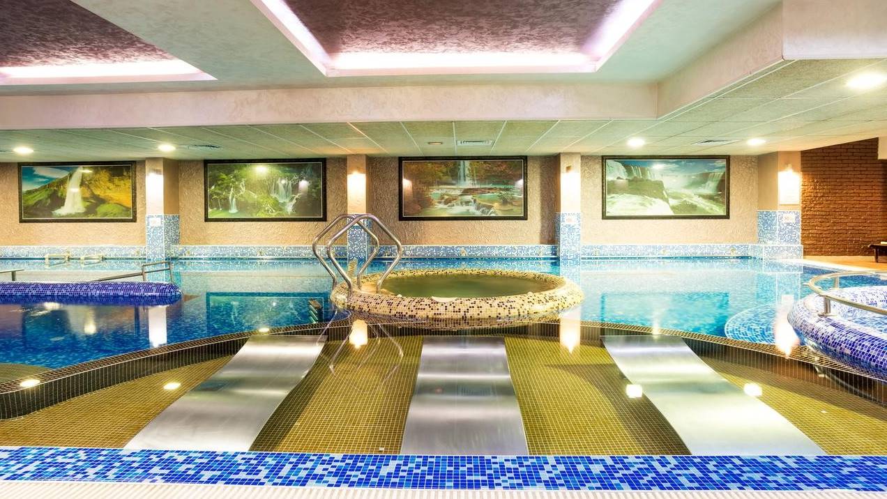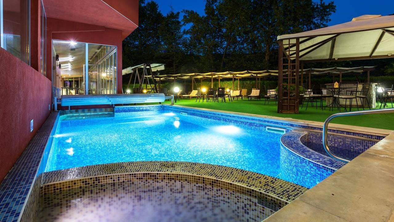 Външен и вътрешен уникален акватоничен минерален басейн (с 57 различни подводни тонизиращи масажни функции):