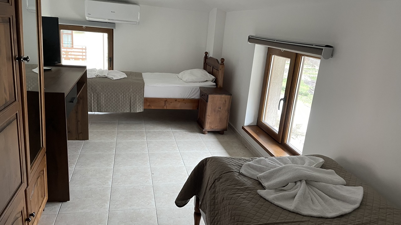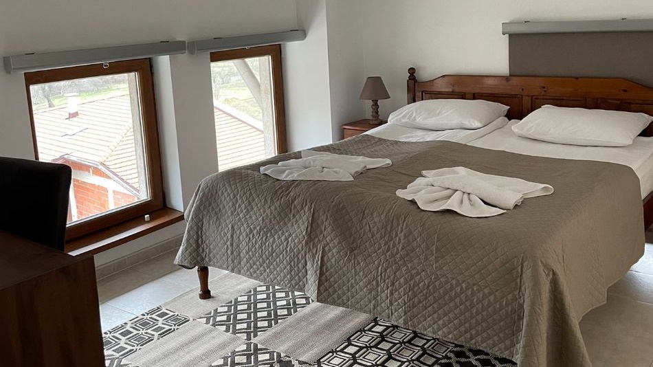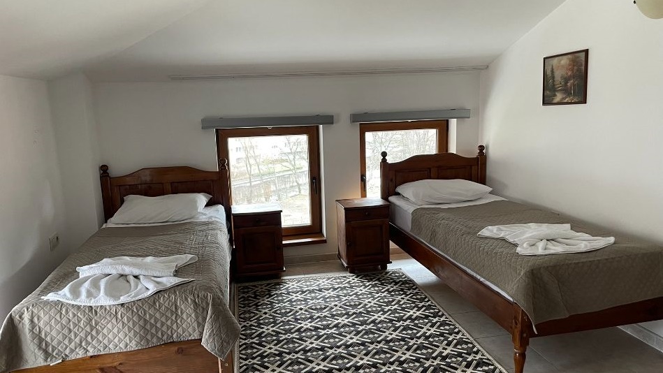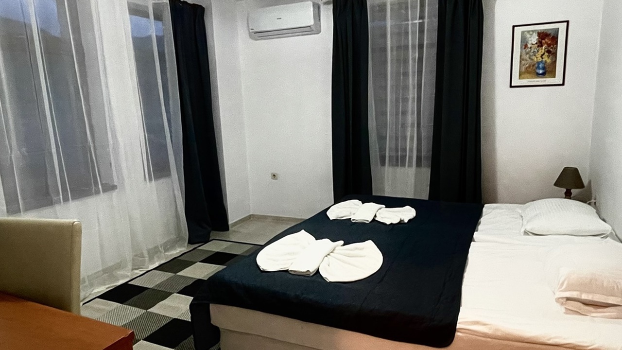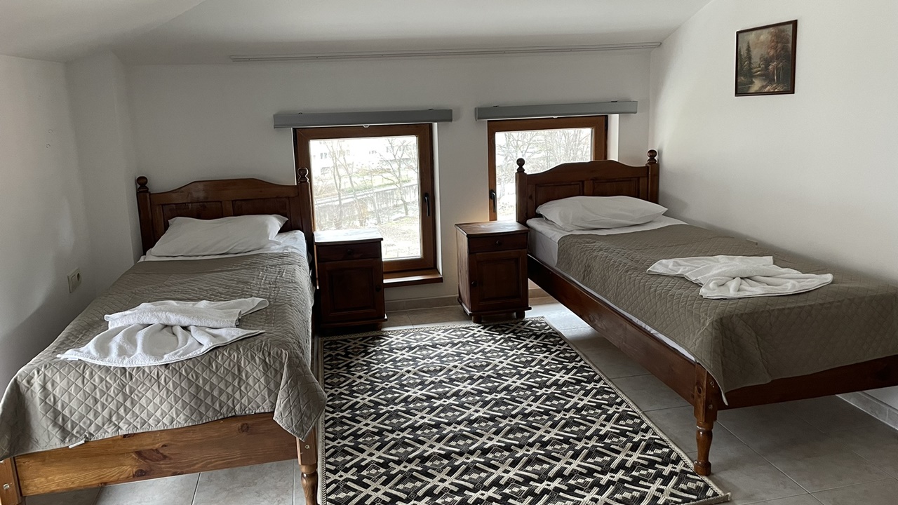 - Двойна стая - 6 бр. Разполагат с телевизор с цифрова телевизия, баня с тоалетна, мини бар, индивидуален климатик, бюро със стол и гардероб. Стаите не разполагат с тераси и достъпът до тях е посредством стълби (няма асансьор)