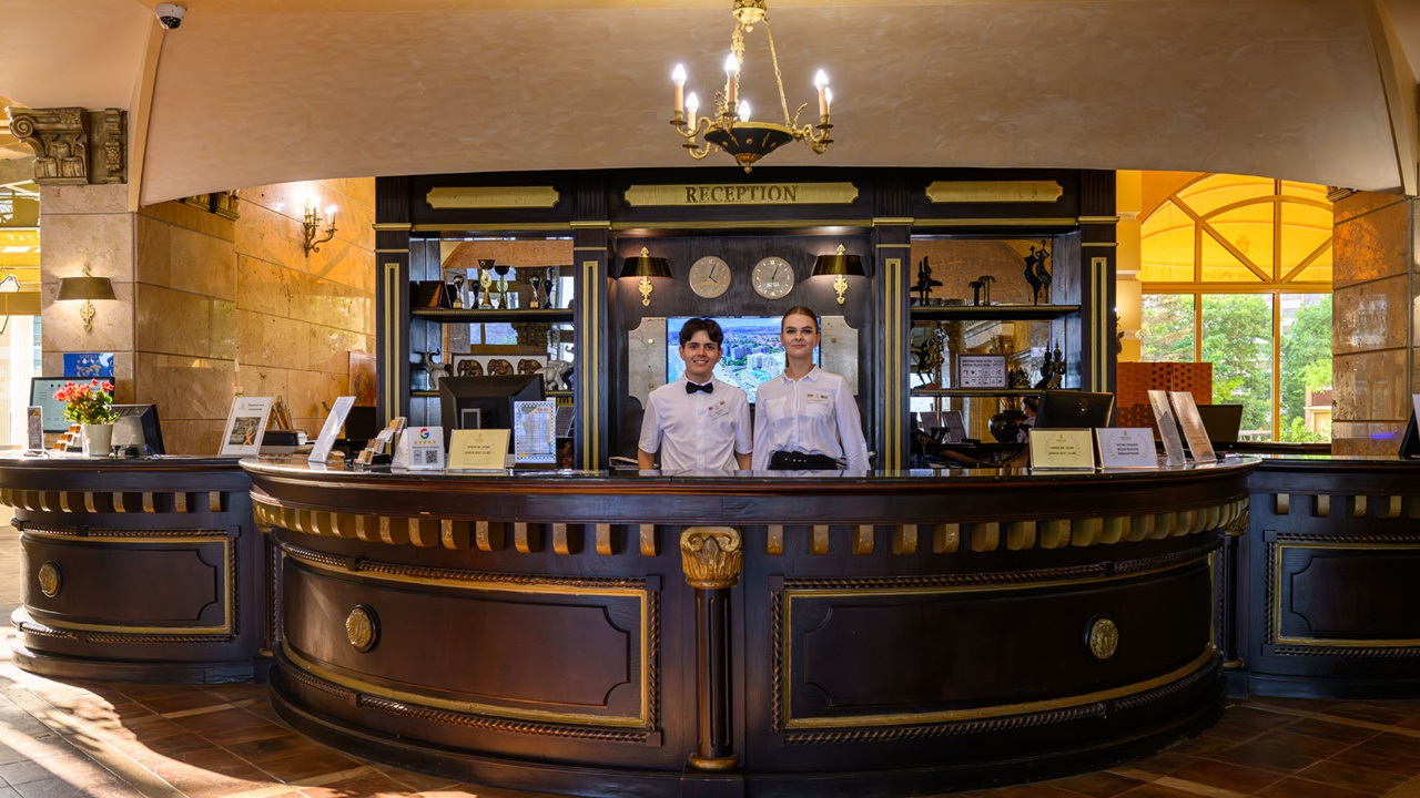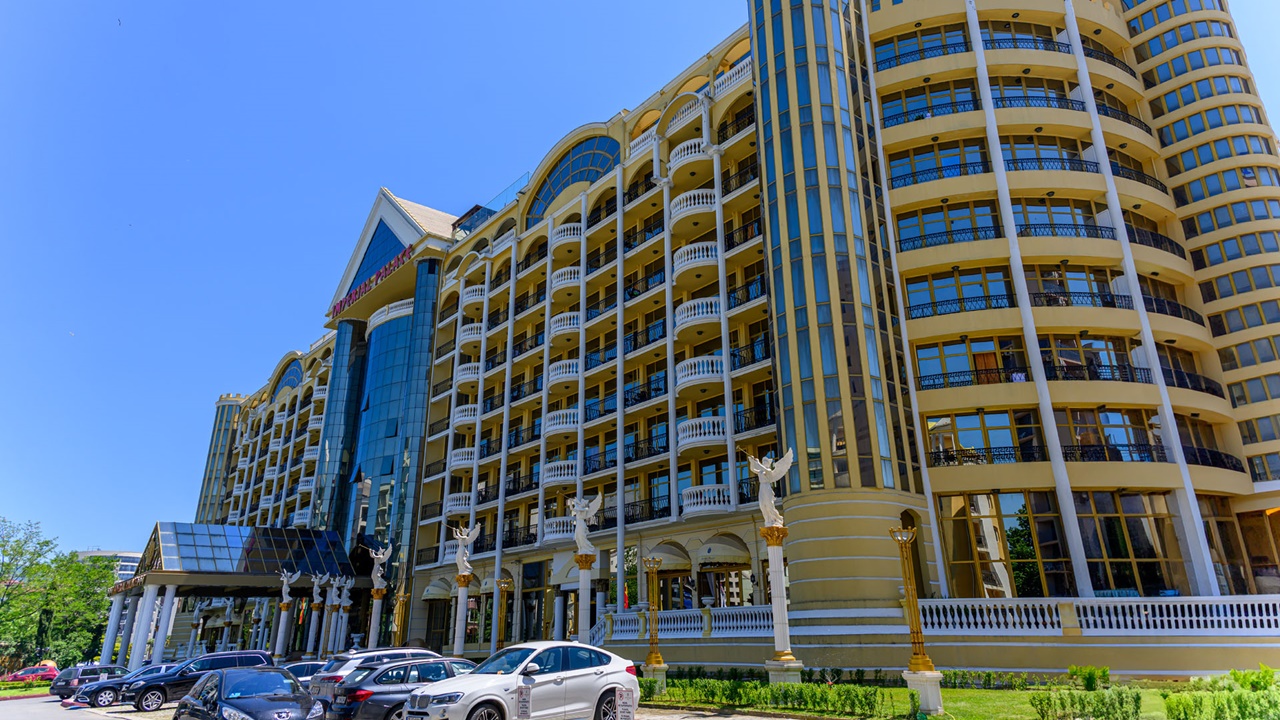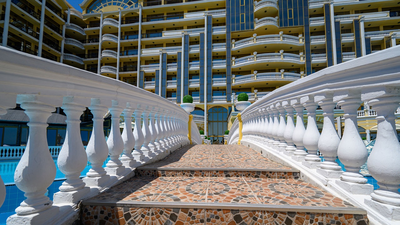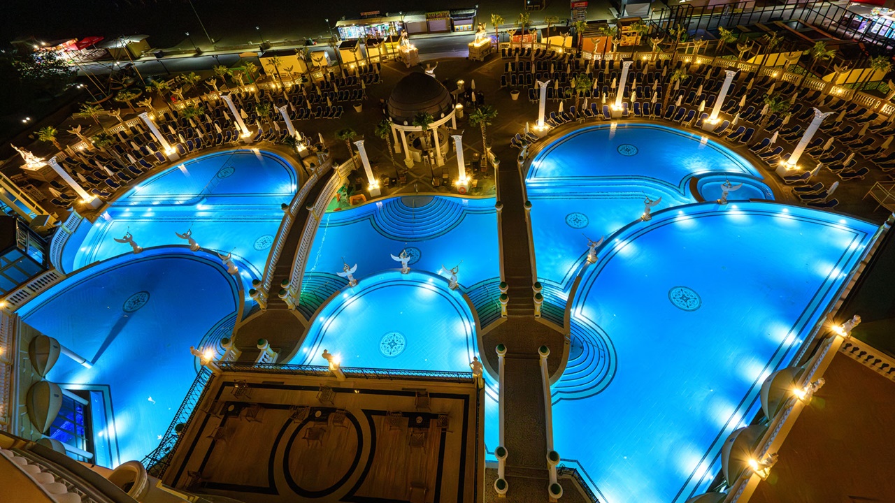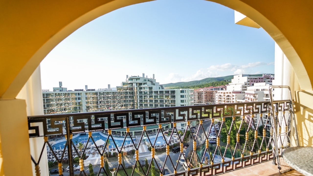 Потопете се в уникалната му атмосфера, подсилена от фин мрамор, масивни древни колони и ефектни полилеи. Насладете се на многобройните му огромни басейни и възхитителната палитра от спортни и разкрасителни процедури. Възползвайте се от удобството и спокойствието на неговите 550 хотелските стаи и студиа с великолепни гледки към залива на Слънчев бряг и стария Несебър. Отдайте на вкусни ястия, приготвени от имперска армия кулинарни професионалисти и сервирани сред красота и елегантност в ресторанта и петте бара на хотела.