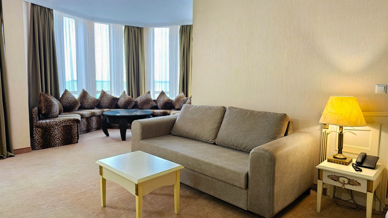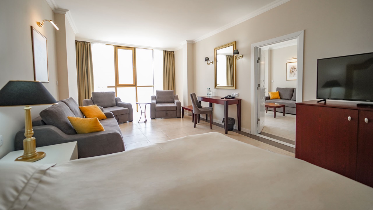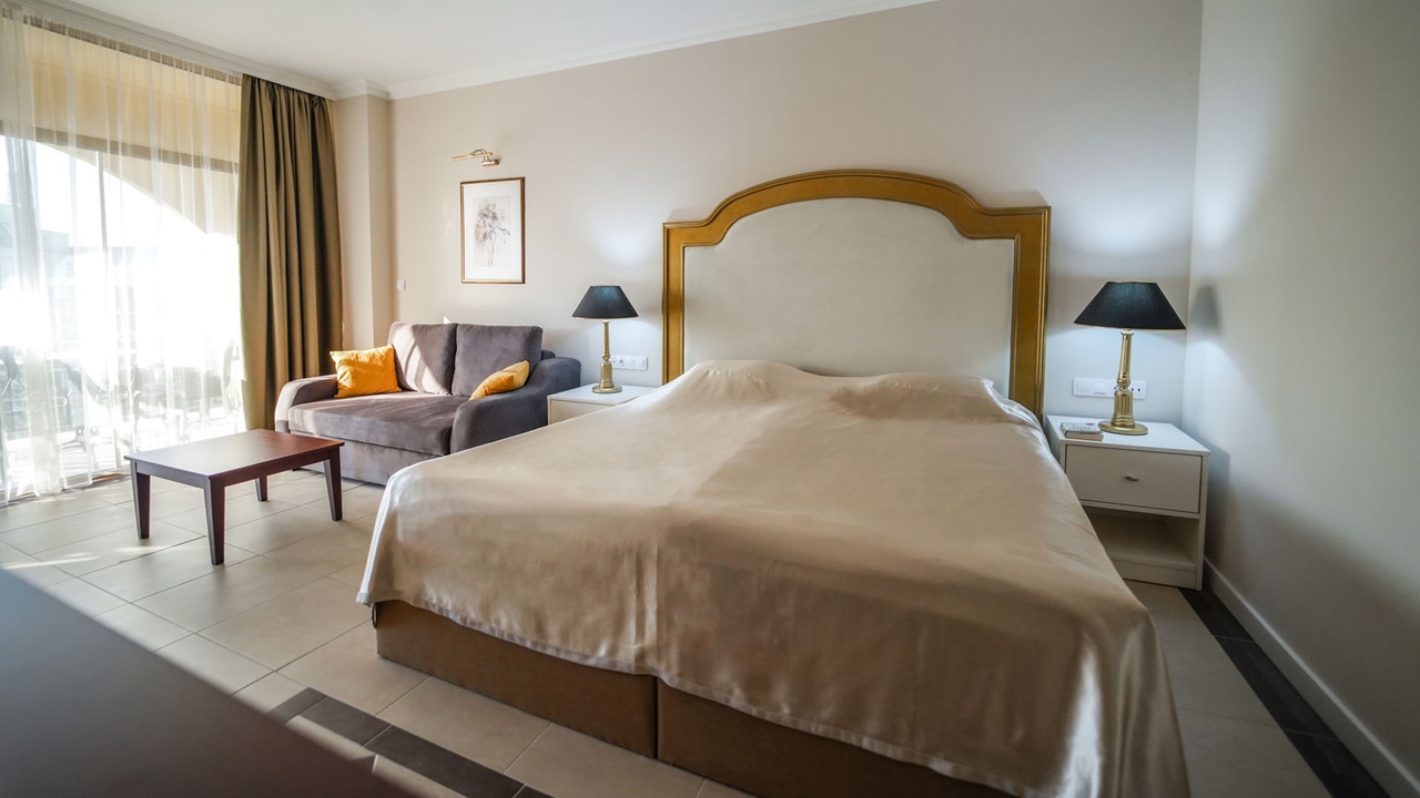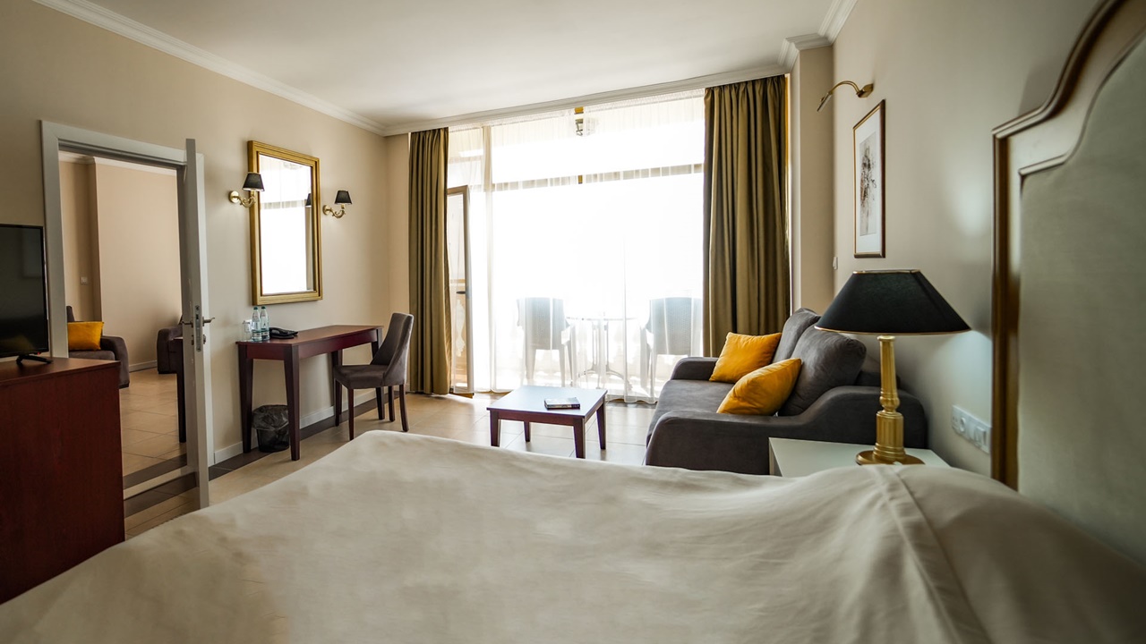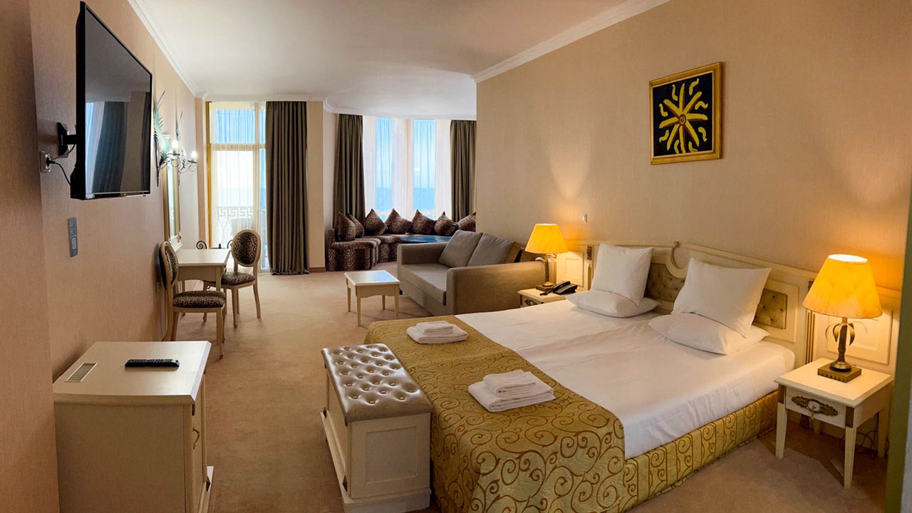 - супериорна двойна стая парк/ море - Шикозни и просторни, супериорните стаи са разположени на 8-я етаж и разкриват уникална палитра от прекрасни природни гледки във всички нюанси на синьото и зеленото. Стилен декор в цветовете на шоколад, карамел и канела, златни акценти, огромно луксозно легло, елегантни мебели в уютния кът за сядане и прекрасни цветни аранжировки ви приканват да изживеете повече.