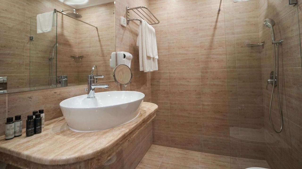 - Всички помещения разполагат с балкони (с изключение на двойните стаи без балкони), телевизор с плосък екран (43'), климатик, телефон, хладилник, сешоар, тоалетни принадлежности и козметика