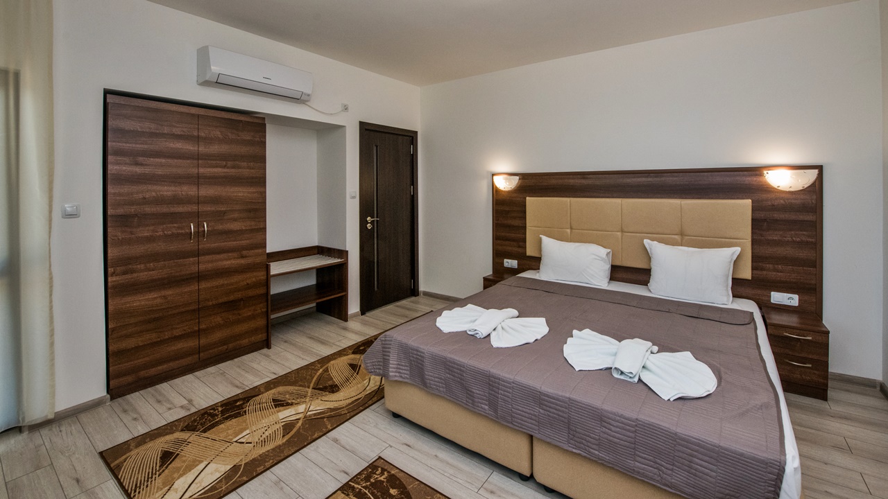- двойна стая - Двойната стая разполага със спалня или две отделни легла, разтегателен фотьойл, телевизор с кабелна телевизия, климатик, минибар, просторна баня с душ кабина и озвучение и тераса със столове