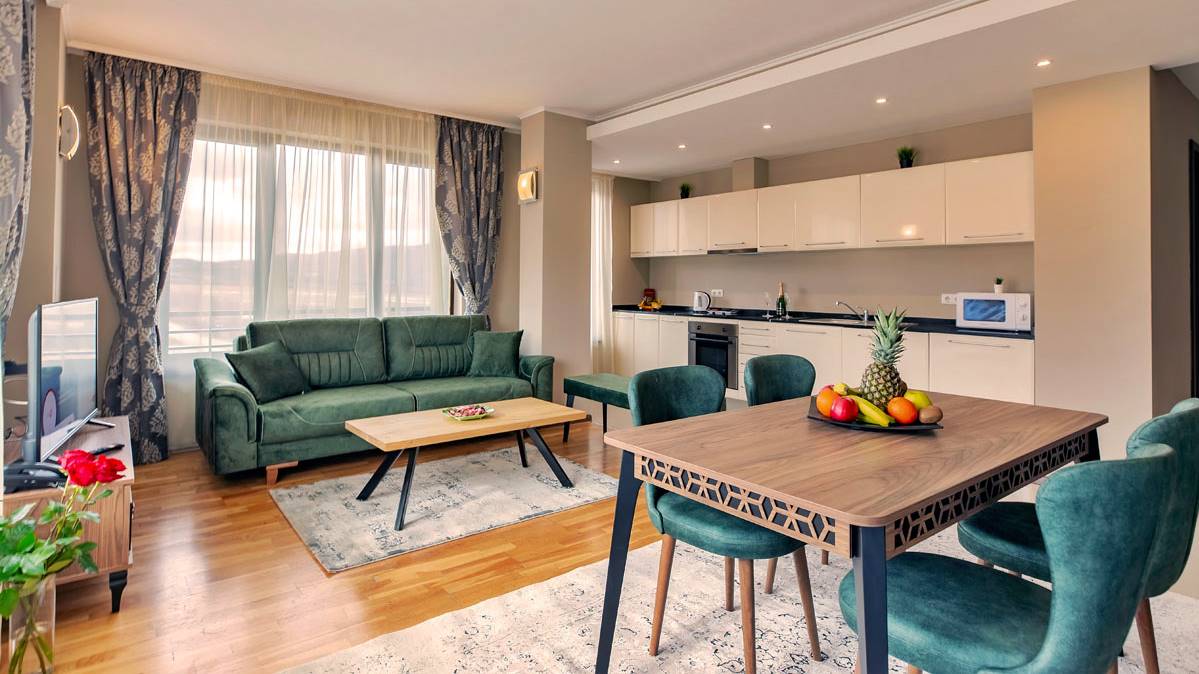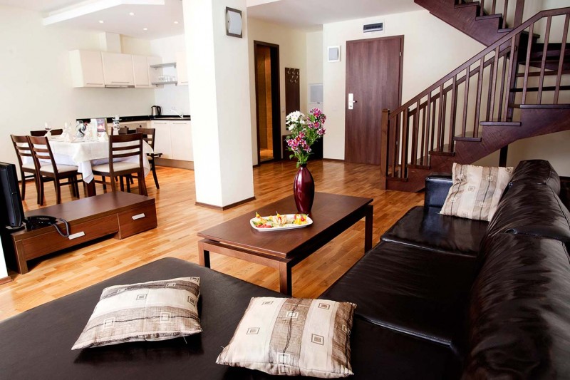 - Всяка от стаите разполага със самостоятелен вход и общо предверие със съседен апартамент (повечето имат и общ балкон), баня с тоалетна, вана или душ и луксозни козметични комплекти, телевизор с плосък екран със сателитни и кабелни канали, Wi-Fi и телефон