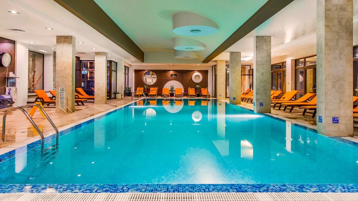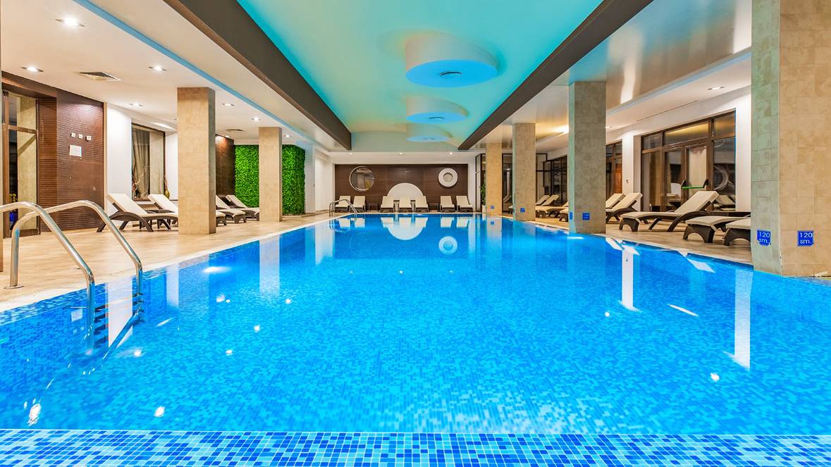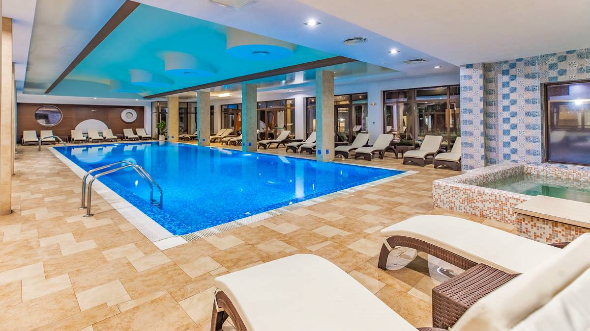 - Вътрешен отопляем басейн със солна електролиза (елегантен начин за дезинфекция на водата в басейна)