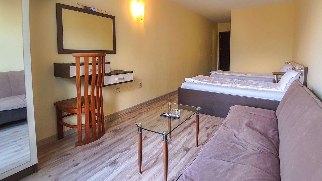 - двойна стая с балкон - 2 възрастни + 2 деца до 11.99 год. или 3 възрастни.