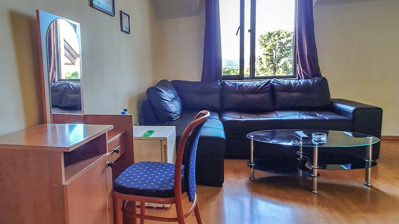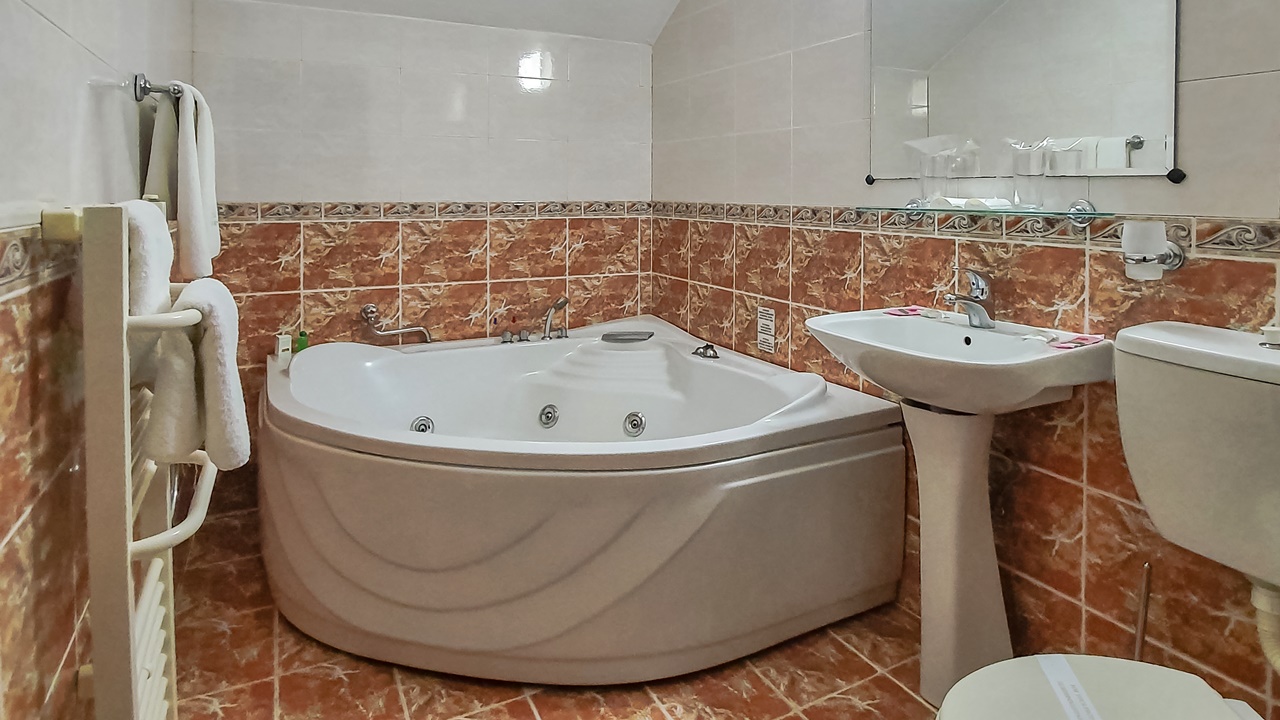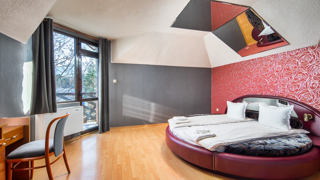 - двойна стая с джакузи - двойните стаи с джакузи са с площ около 16 кв.м. и разполагат с цяла спалня, разтегателен диван, малък хладилник, телевизор с кабелна телевизия, безжичен интернет, самостоятелна баня с хидромасажна вана. Някои от стаите имат и балкон (не всички)