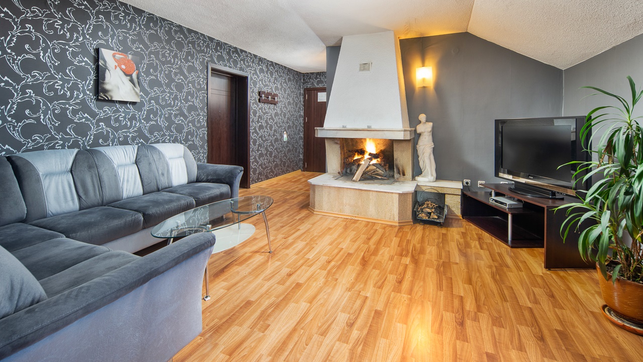 - апартамент с 2 спални - двуспалните апартаменти са с площ около 65 кв.м. разполага с три помещения – една спалня, втора стая с 2 легла персон и половина и една всекидневна с разтегателен диван, малък хладилник, телевизор с кабелна телевизия, безжичен интернет, камина, самостоятелна баня с хидромасажна вана, втора самостоятелна баня с вана и собствена сауна, балкон