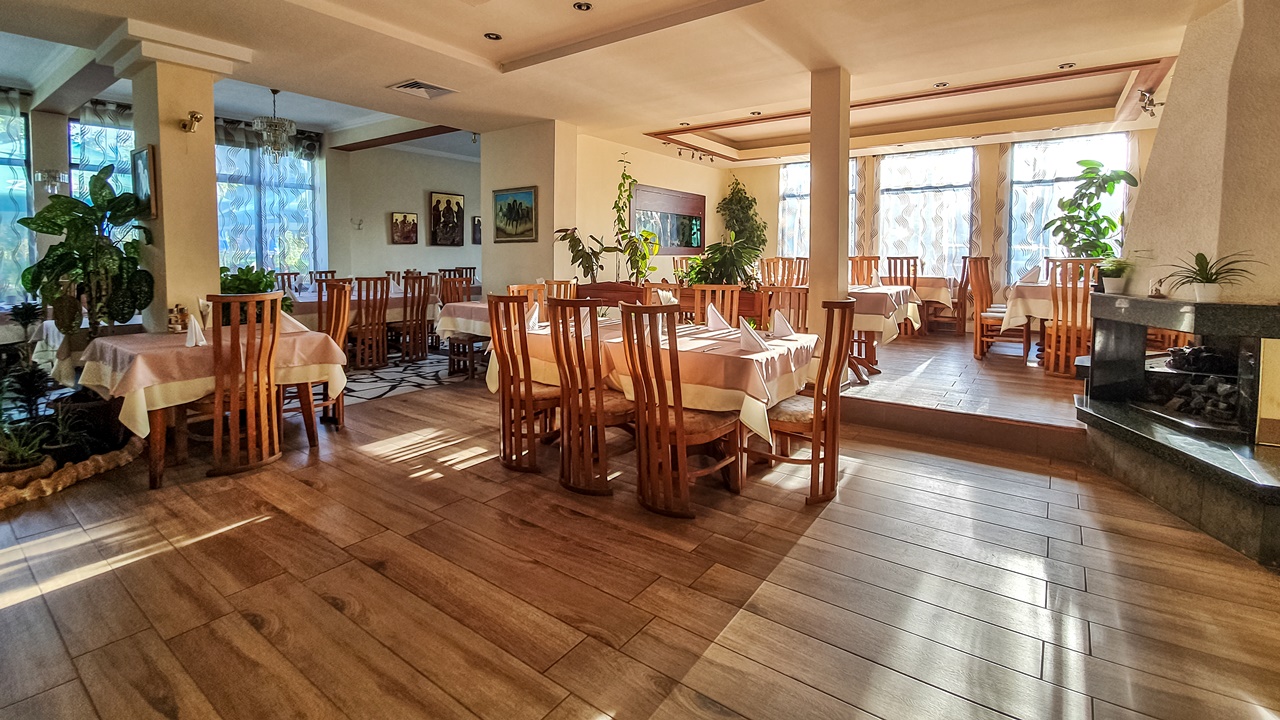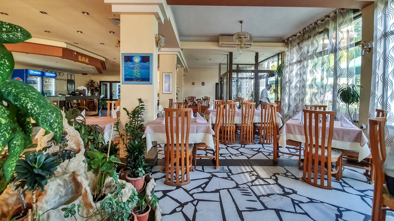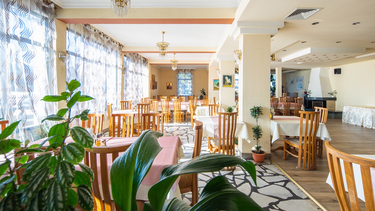 На разположение на любителите на добрата и разнообразна кухня е уютен ресторант със 100 места, а през топлите месеци - и градина с летен бар с още 150 места. При организирани мероприятия или предварителна заявка за доброто настроение на гостите се предлага музика с DJ. Хотелът предлага още целогодишен открит минерален плувен басейн, детски басейн и джакузи с температура от 28 до 42 градуса. Работно време от 6:00 до 22:00ч. За допълнителния комфорт на гостите има изградена малка релакс зона с джакузи, сауна, парна баня и стая за масажи. Работно време от 9:00 до 19:00 ч.