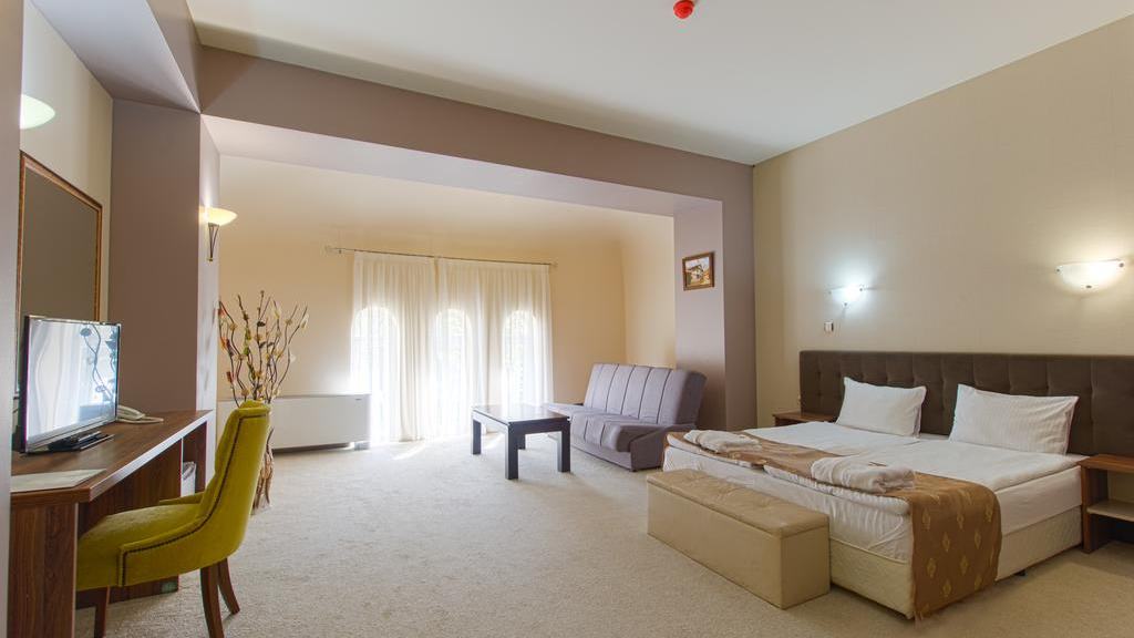 - Двойните луксозни стаи разполагат със всички удобства на стандартните двойни стаи, но са реновирани, по-луксозно обзаведени, с по-голяма площ (35 кв.м.) и разполагат със спалня, разтегателен двоен диван и вана