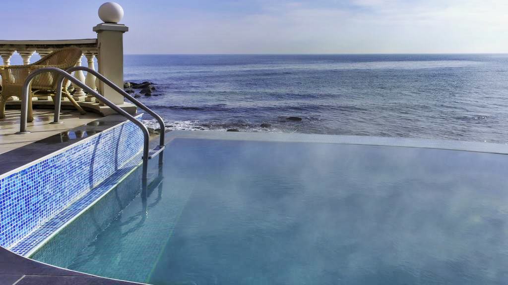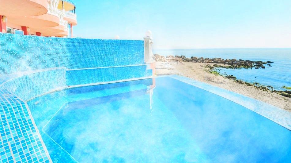 - 2 открити минерални инфинити басейни с температура на водата 38 градуса на самия морски бряг с натурална минерална вода
