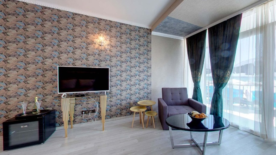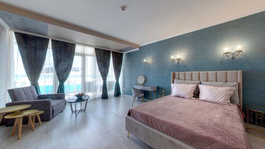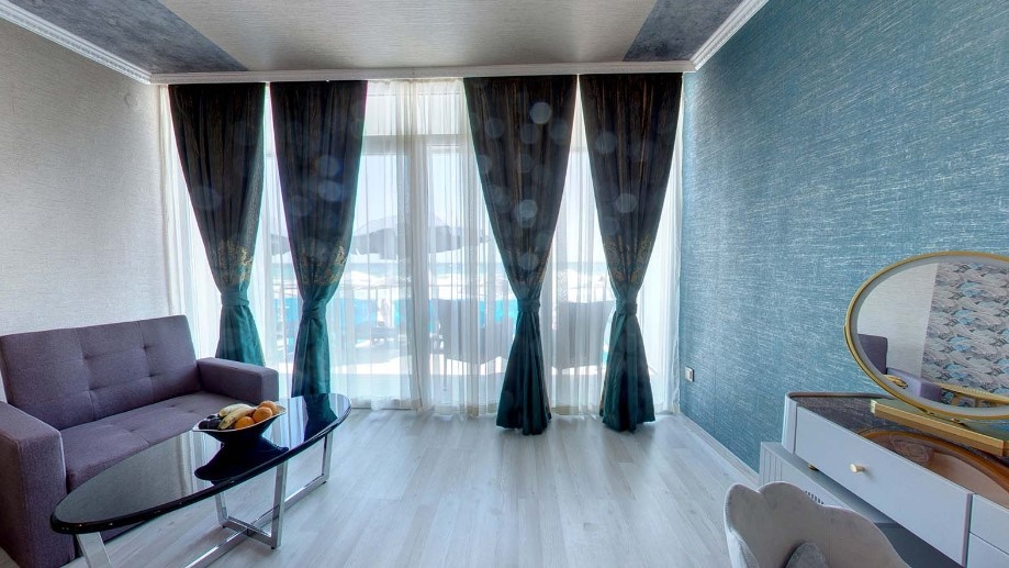 Всички стаи в хотел Сириус Бийч са обзаведени в модерен стил и разполагат с централна климатизация, LCD телевизори, кабелна телевизия, мини хладилник, баня с вана, балкон. Повечето от помещенията предлагат невероятен морски изглед.