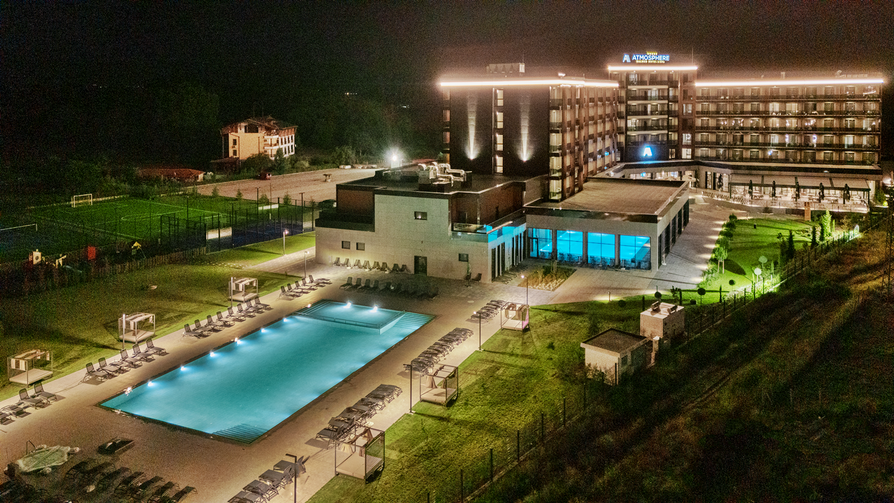 Хотел Атмосфера / Atmosphere ***** e един от най-новите хотели в Павел баня, отворил врати в началото на 2024 г. Намиращ се в сърцето на България, сред живописната Розова Долина, величествената Стара планина, тайнствената Средна гора, в града на минералните извори — Павел баня, хотел Хотел Атмосфера ***** е олицетворение на простор, свободен дух и елегантност.