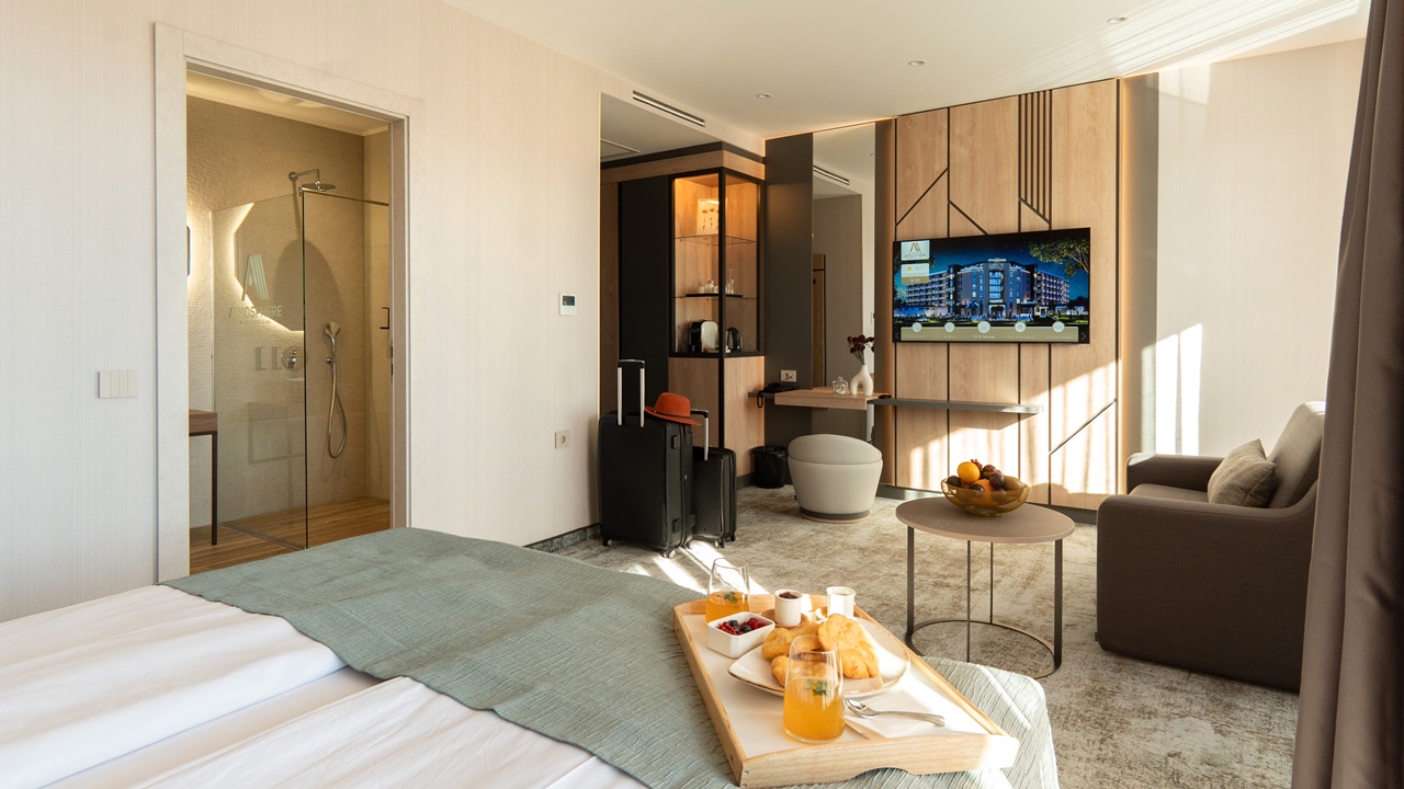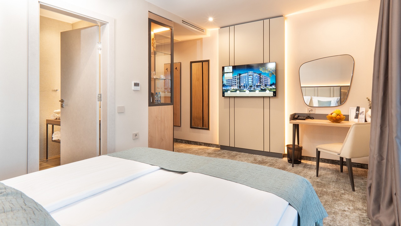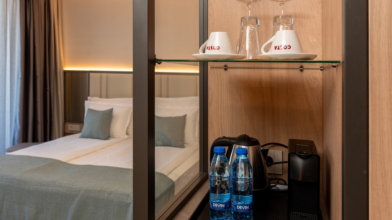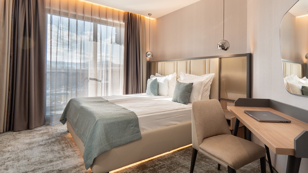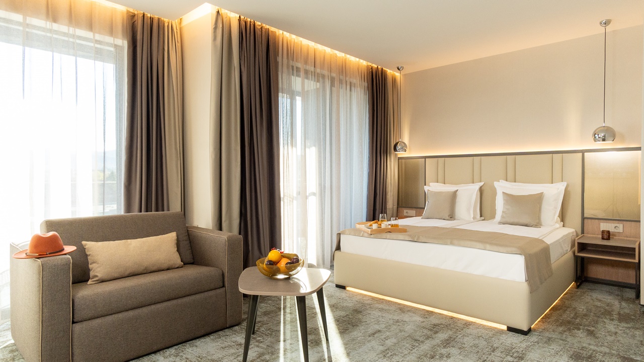 - двойна стая Премиум с балкон - Премиум стаите са с площ около 35 кв.м. и разполагат със спалня, разтегателно кресло, 55'' LED телевизор, климатична система с индивидуално регулиране, кана за топла вода, сет за кафе и чай - комплимент, богато зареден минибар, безплатен сейф, тоалетни принадлежности, халат, чехли, сешоар и балкон. В 6 бр. от стаите има разтегателен двоен диван подходящ за настаняване на 2 деца или възрастен и дете