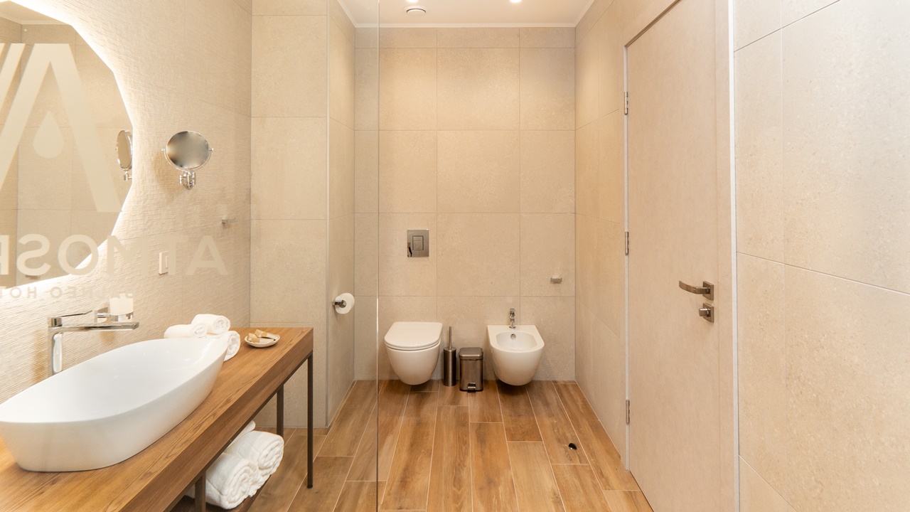 Хотел Атмосфера ***** създава условия за мечтаната почивка и през четирите сезона. Предлага настаняване в двойни стаи, двойни стаи премиум, СПА апартаменти и VIP апартамент. Всички помещения са модерно и стилно обзаведени, с прекрасна панорама.