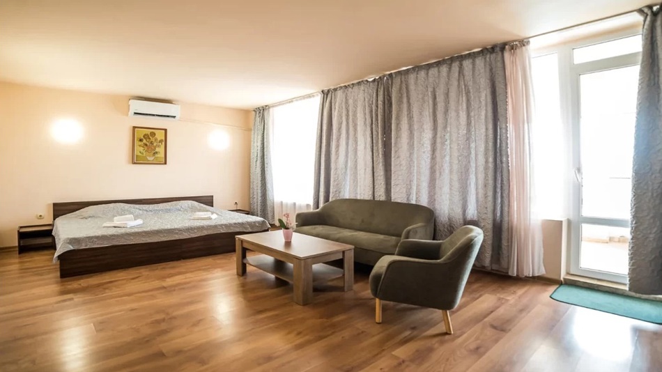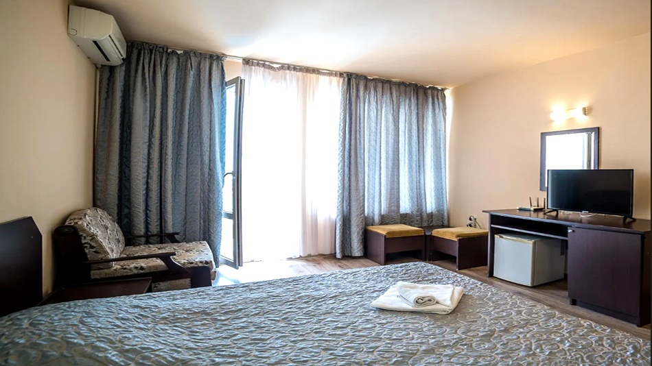 - всички помещения са с климатици, душ - кабини, хладилници, LCD - телевизори и балкони