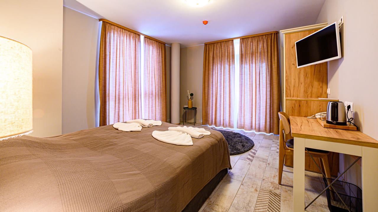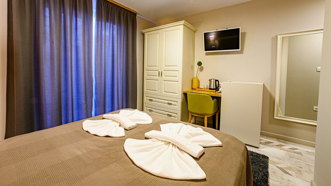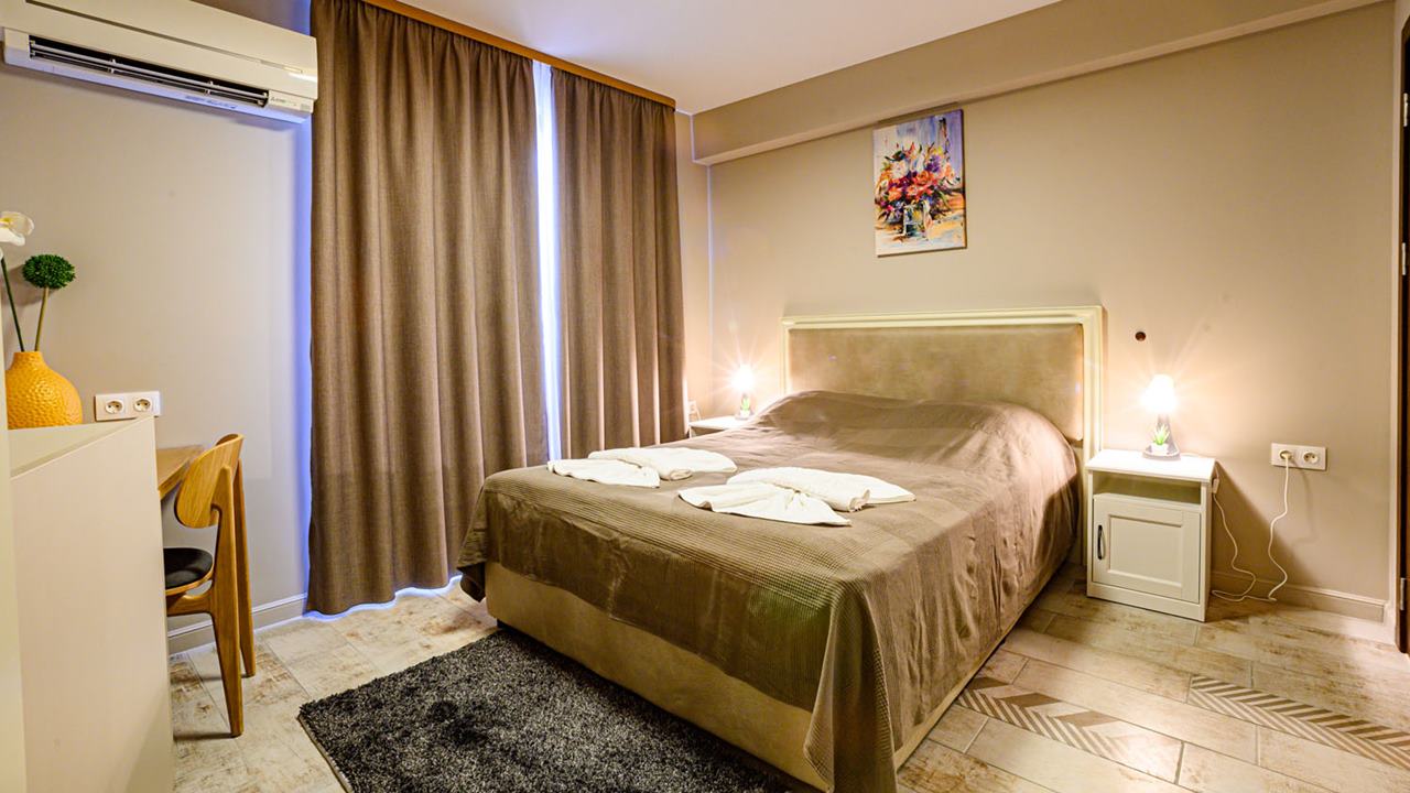 - двойна стая - 2 възрастни и 1 дете или 3 възрастни. Спалня + допълнително легло. Всички са с балкони.