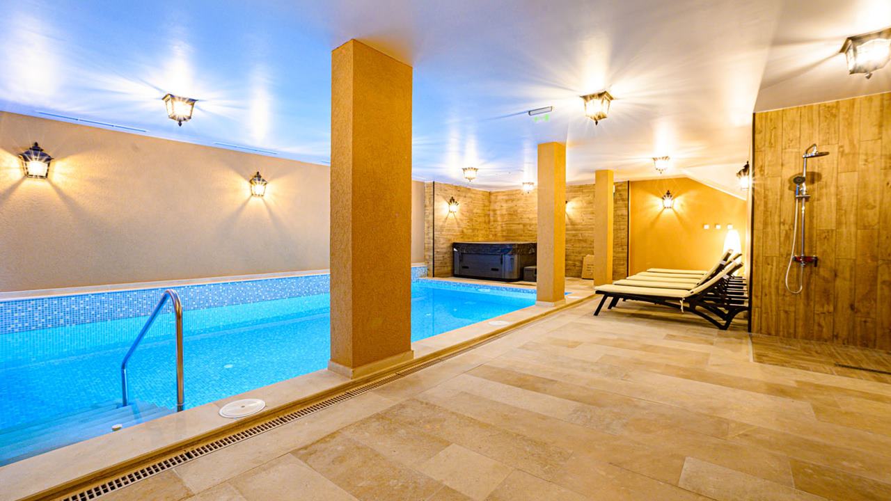 - Топъл басейн с опция за насрещно течение (8 метра дължина, 4 метра широчина, 32-34°)