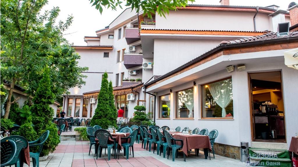 Заведението ни разполага със 140 места и красива лятна градина със 150 места. За Вашето настроение се грижи DJ всяка вечер, който изпълнява Вашите музикални желания. В зимния сезон е възможно музиката да се чува и по стаите! Екипът ни от професионалисти ще организира гостуването Ви в Аризона, Павел баня така, че да преживеете чудесни мигове, да се насладите на великолепна храна и специално подбрани питиета.