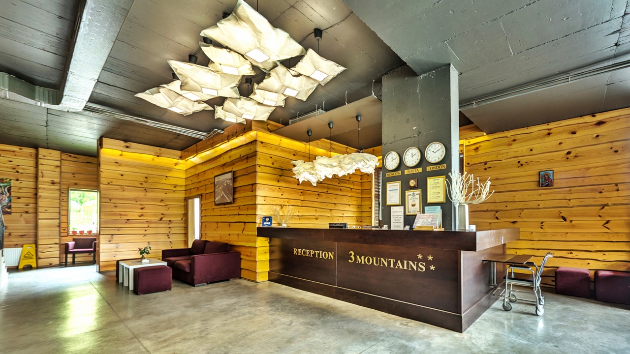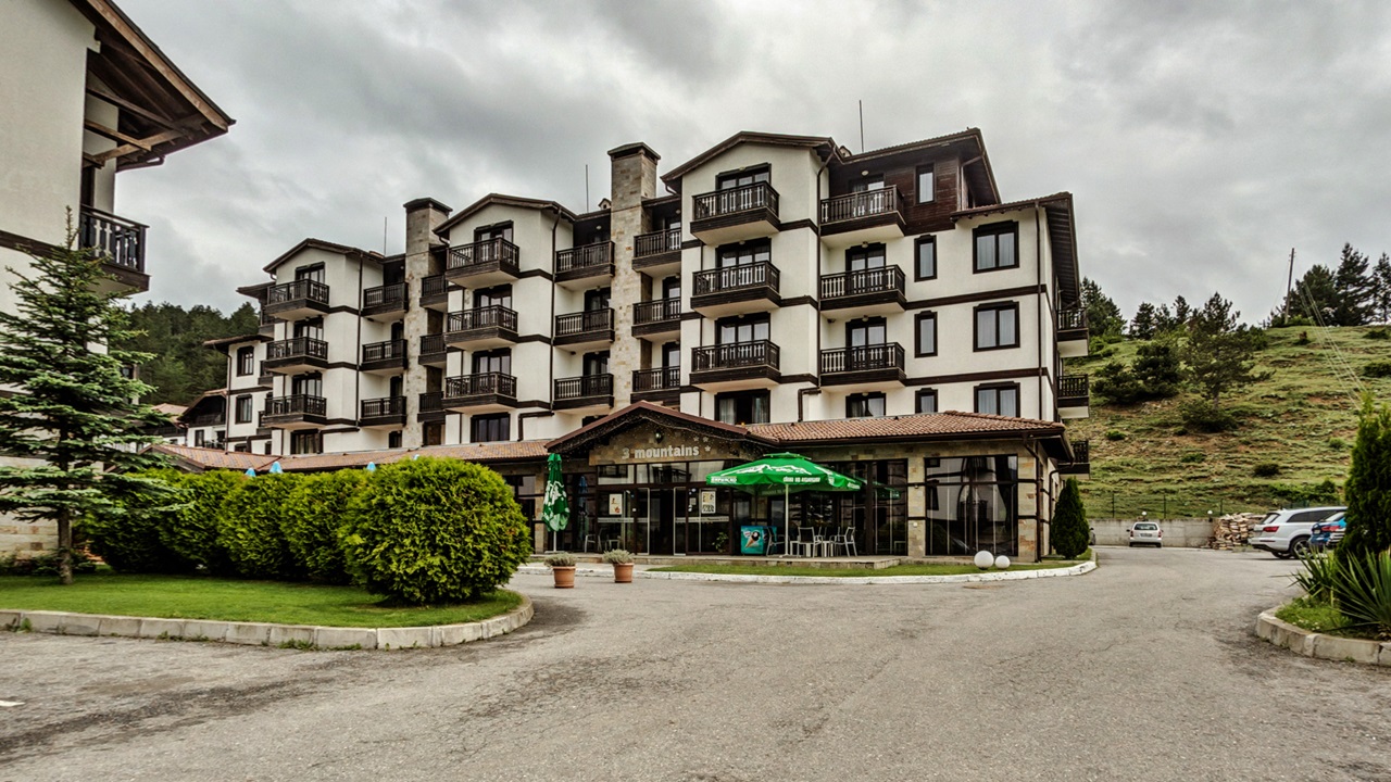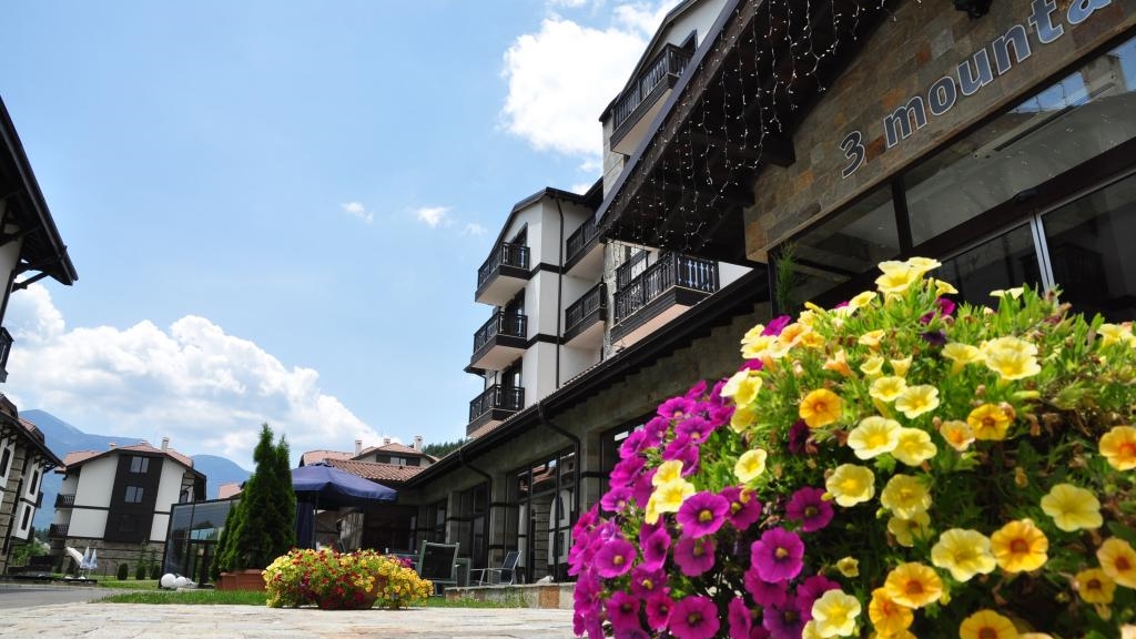 Хотел 3 Планини, Разлог, е луксозен хотел, изграден в характерен алпийски архитектурен стил, съчетан с традиционни и национални елементи. Комплексът предлага настаняване в луксозни студия и едноспални апартаменти. Всички стаи са обзаведени с телевизор с кабелна телевизия, мини бар, а някои от апартаментите разполагат и душ кабина. Всички стаи имат южно изложение и собствен балкон с прекрасен изглед към върховете на Пирин и Родопите. На гостите на хотела са на разположение още: билярд, тенис на маса, мини бар, колела под наем, процедури, лимфен дренаж. Организиране на музикална програма, планински преходи, рафтинг, конна езда и уроци по конен спорт.