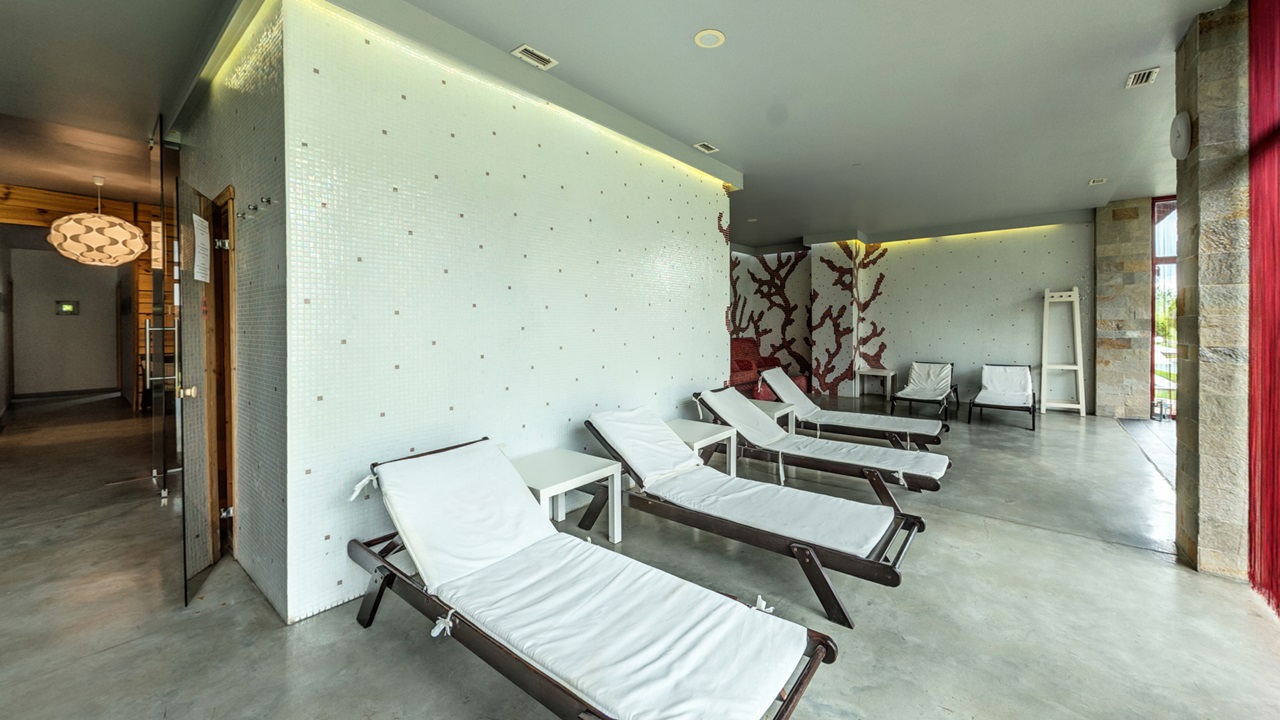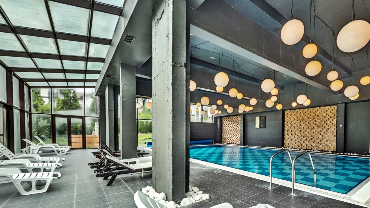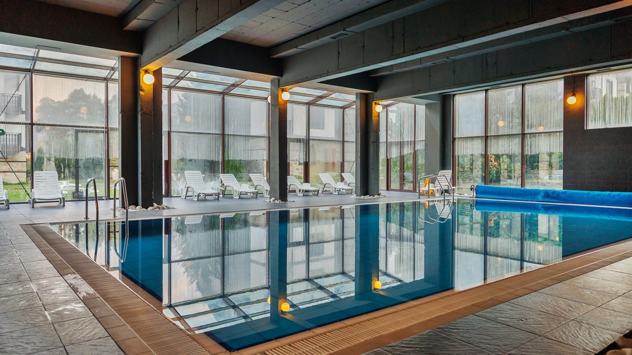 - Вътрешен отопляем минерален басейн (32 градуса) с излаз към градината