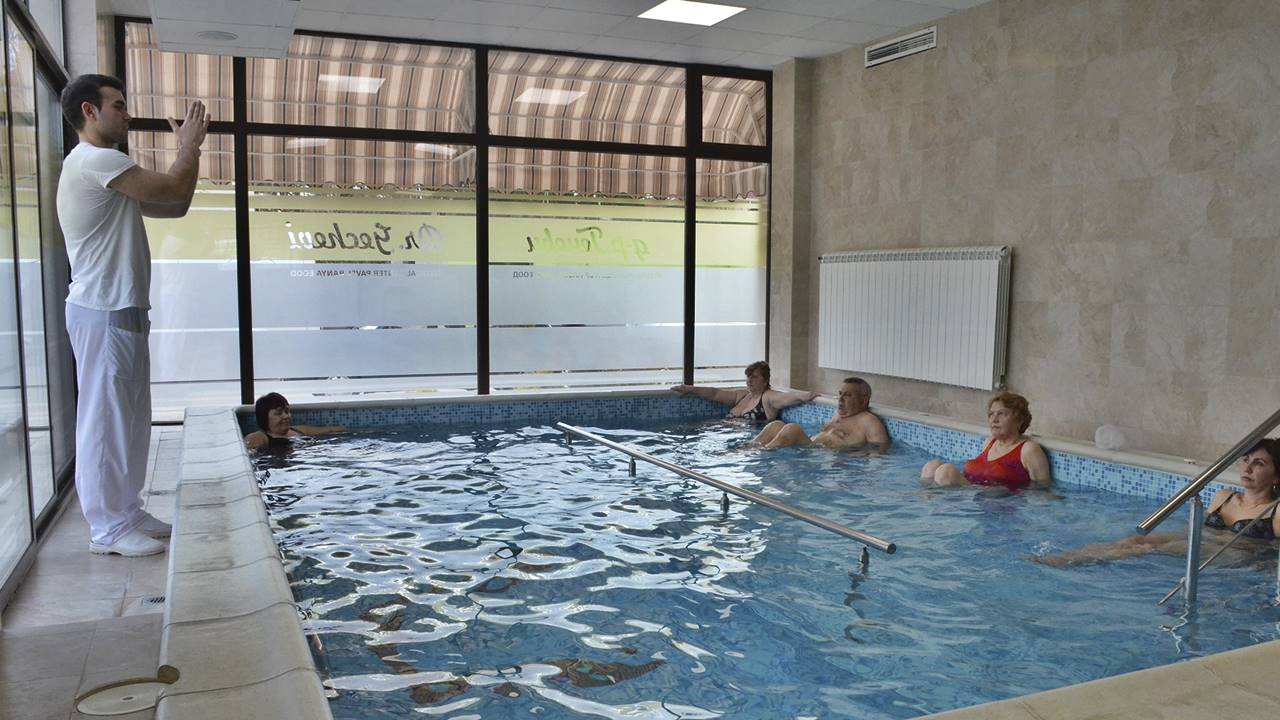 - Балнеолечебни процедури – балнеотерапия: минерални вани, в комбинация с аромотерапия, подводен (хидро-) масаж, подводната ЛФК, представляваща групова или индивидуална ЛФК в басейн с минерална вода