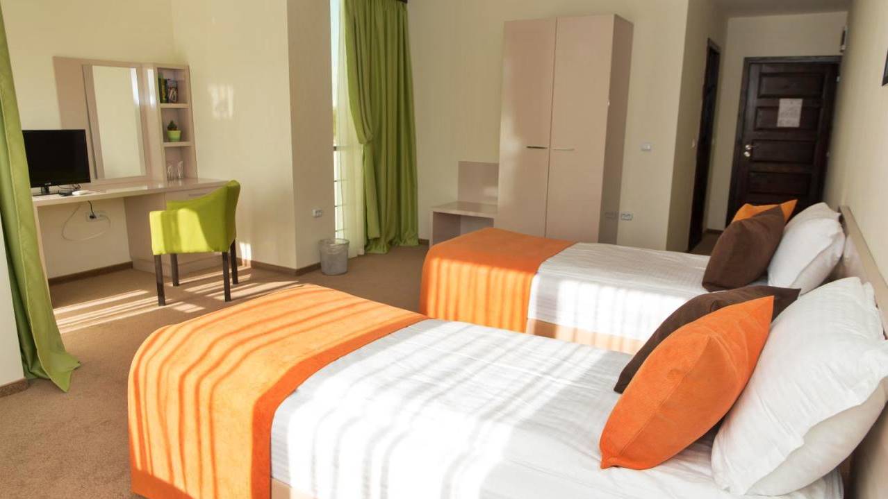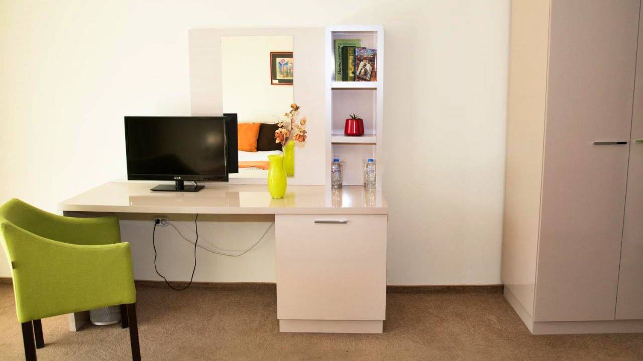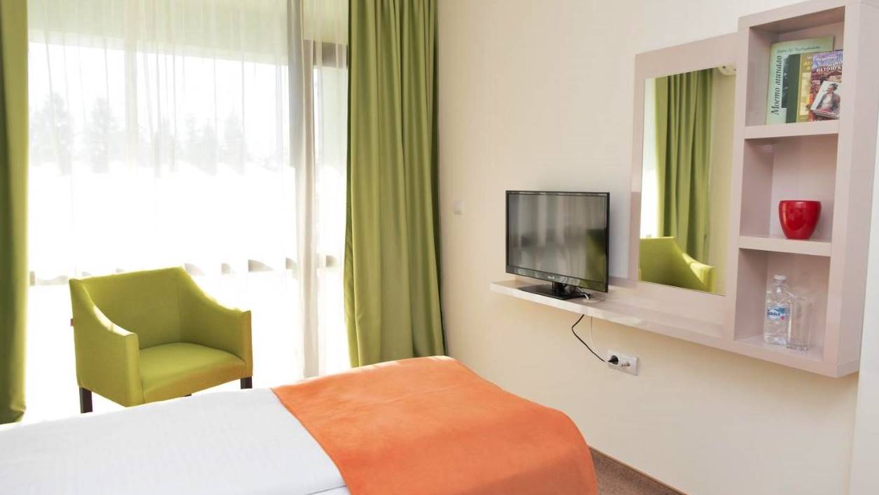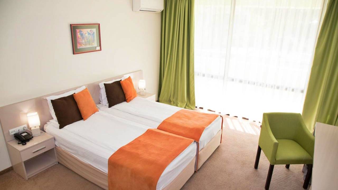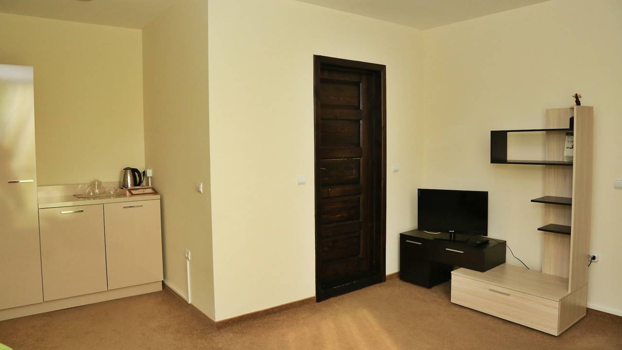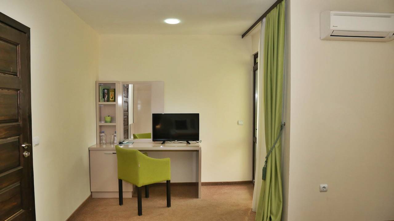 - всички помещения са светли и тихи, обзаведени в топли цветове и разполагат с: топла вода, отопление с климатик, кабелна телевизия, LCD телевизор, телефон, зареждане с халат и чехли, сешоар, LED огледало, тераса, противопожарна система, безжичен интернет и малка библиотека с книги на Чудомир
